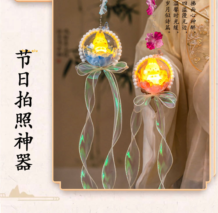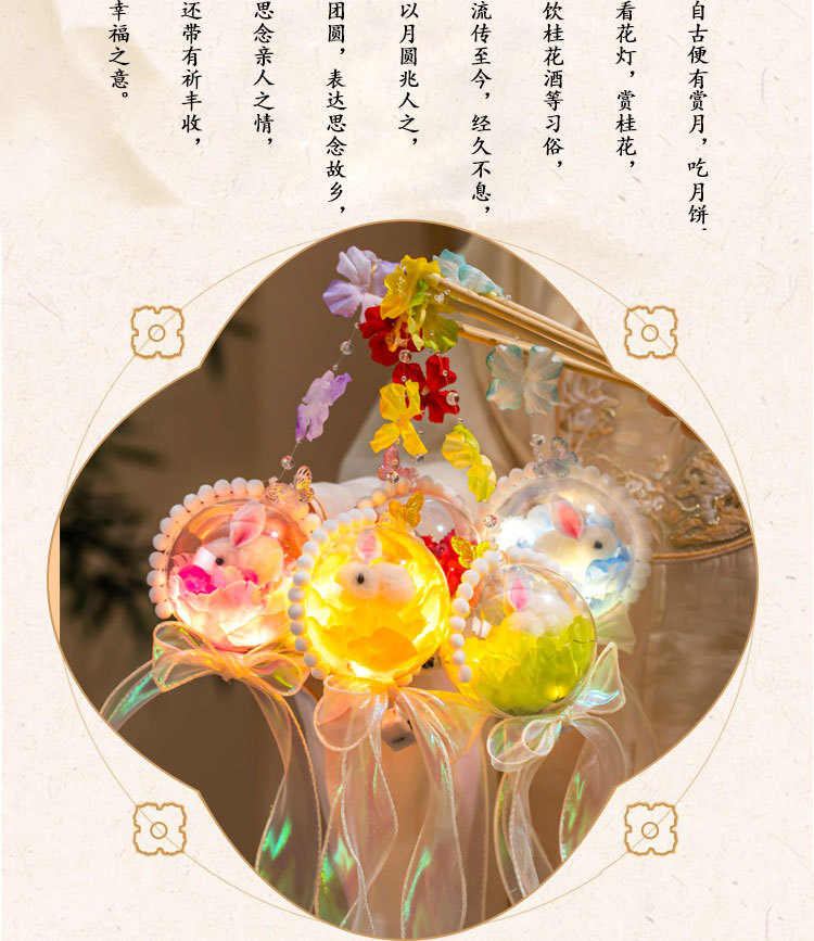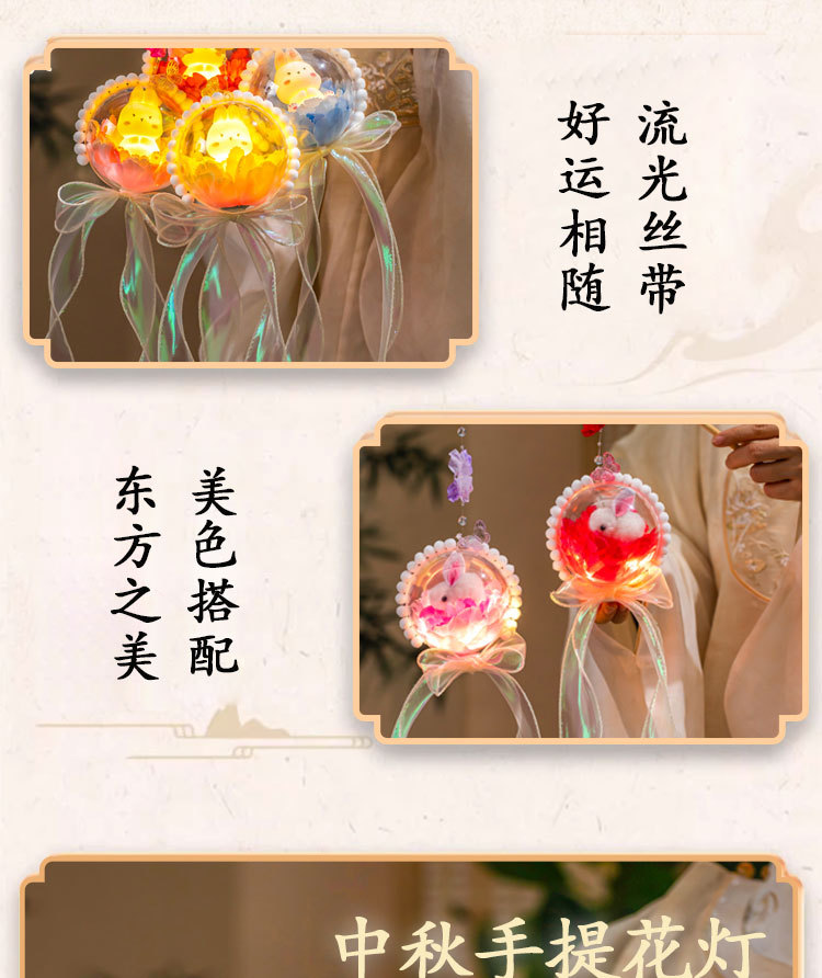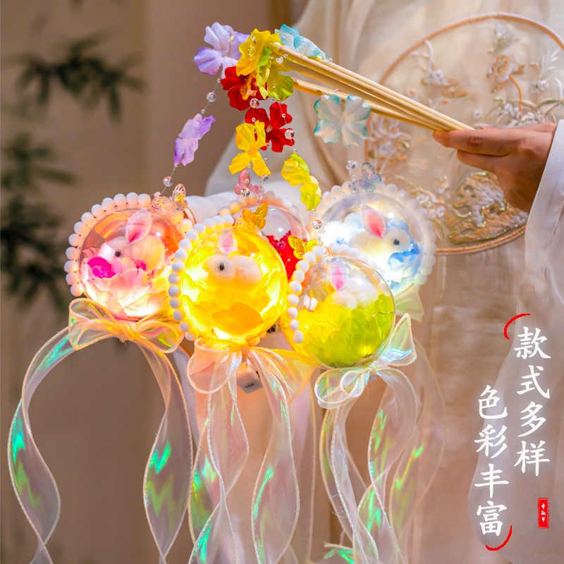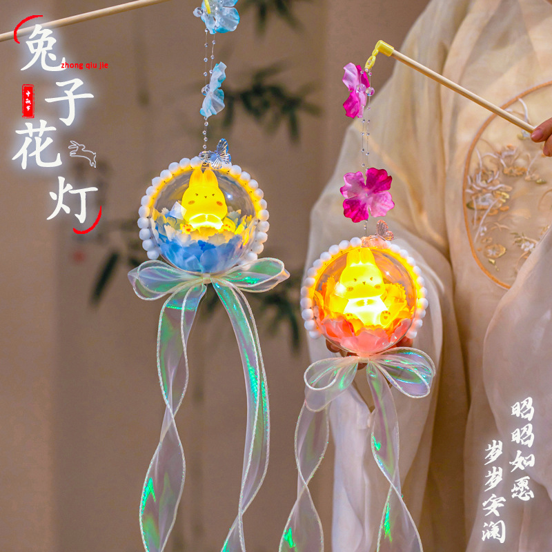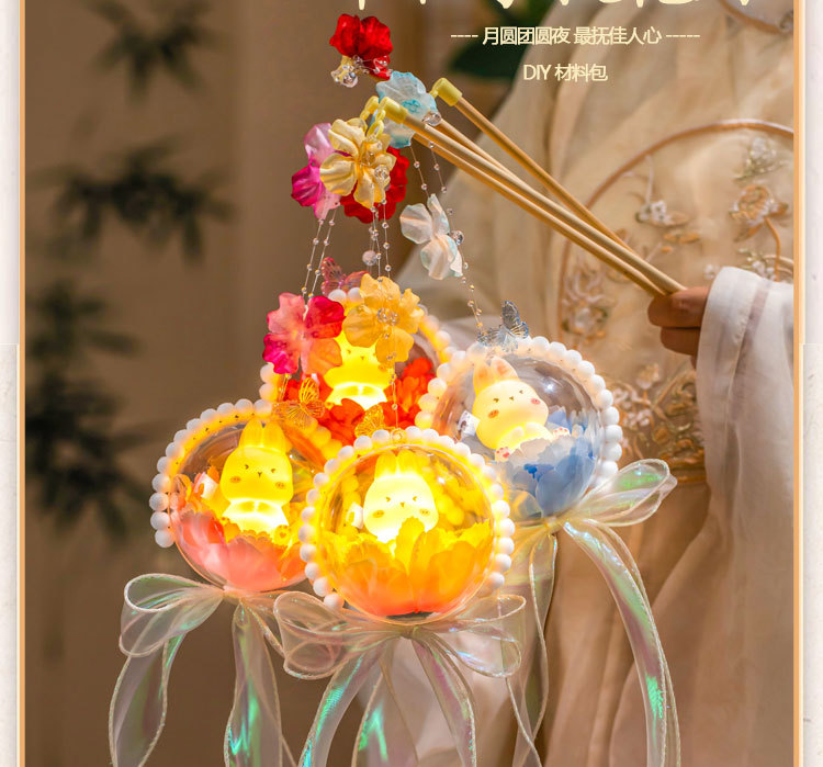 中秋节兔子灯笼diy材料包儿童手提发光玉兔花灯古风汉服宫灯摆摊