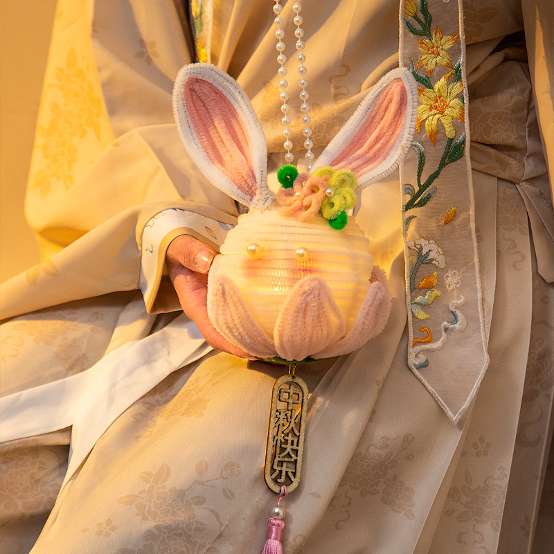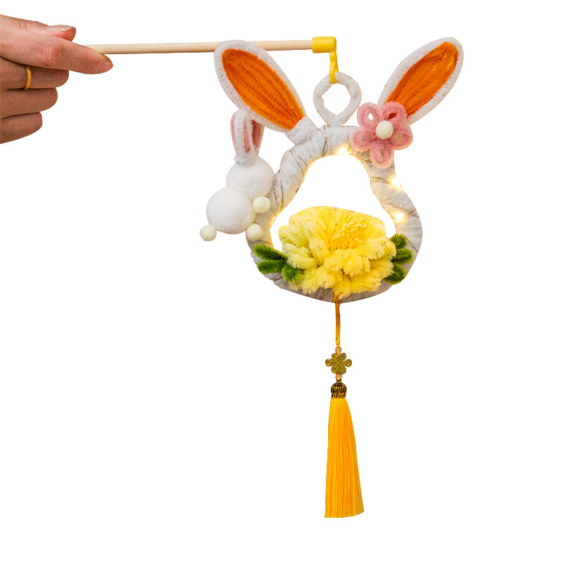 中秋节兔子灯笼儿童diy手工材料扭扭棒手提发光花灯夜市摆摊批发