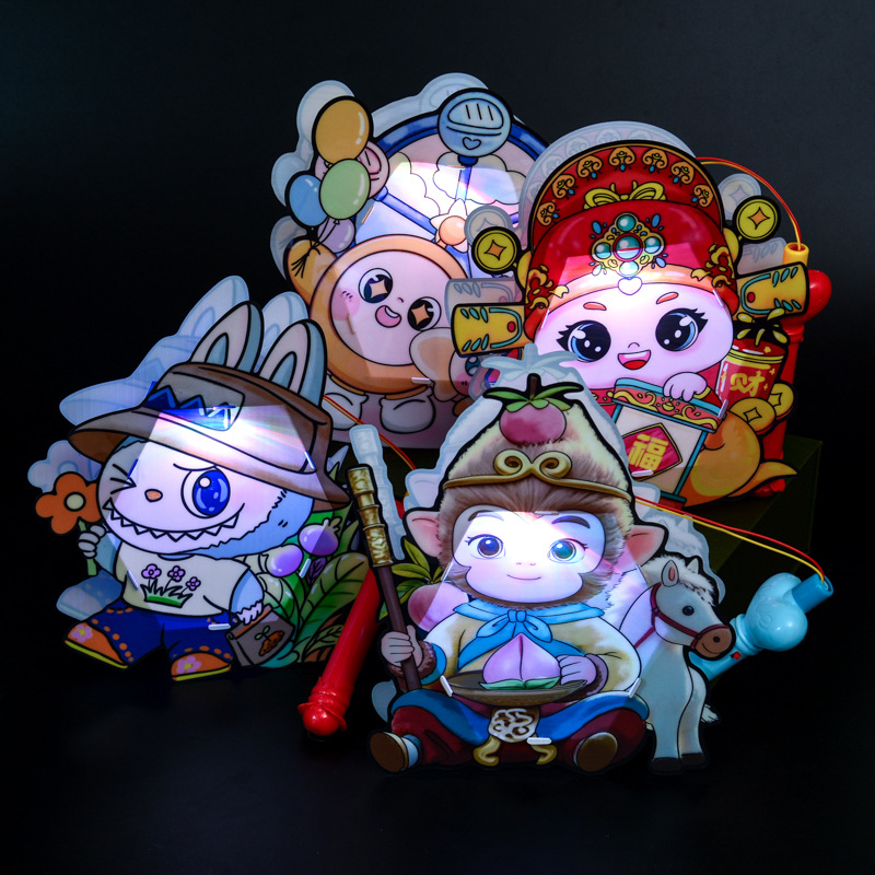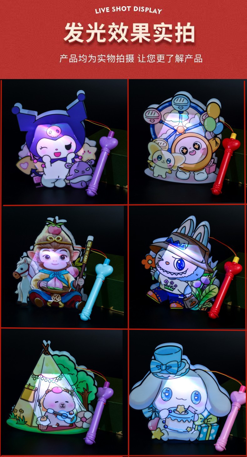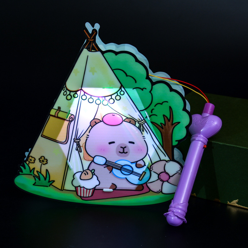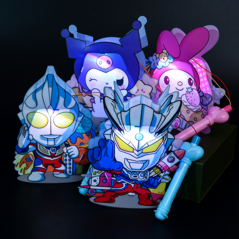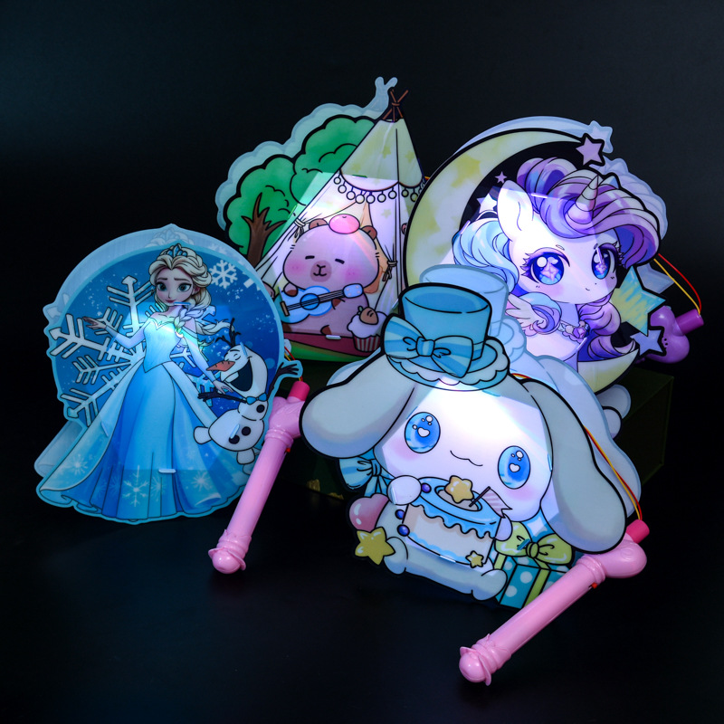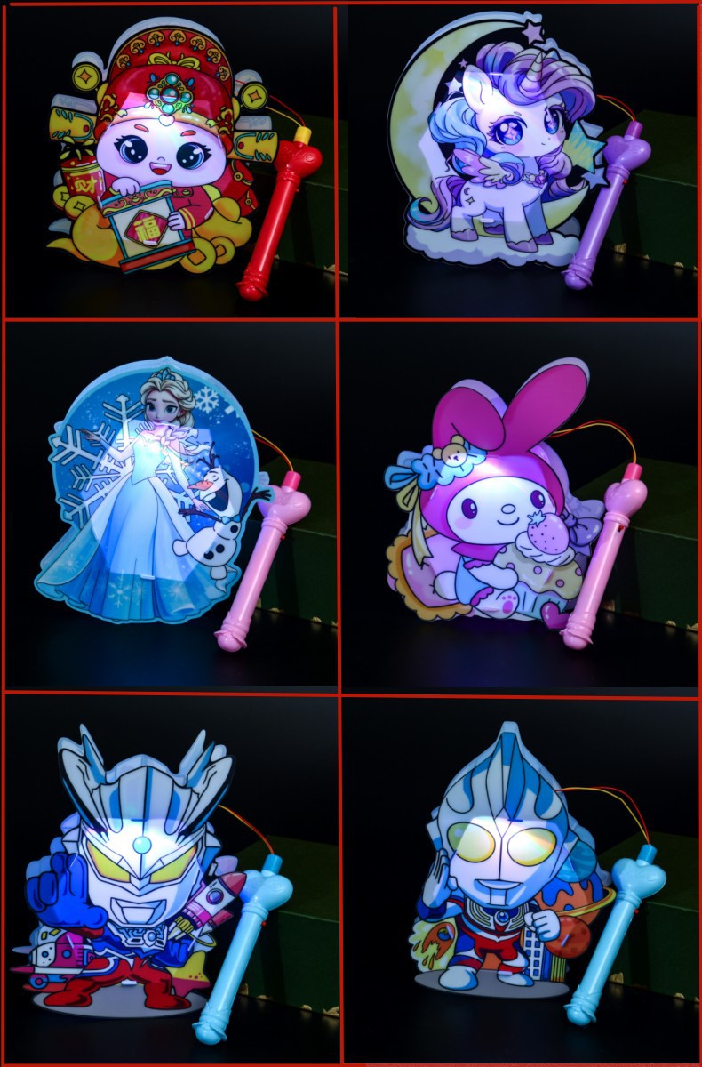 中秋儿童diy灯笼手提卡通pvc元宵花灯手工音乐摆摊新款发光玩具灯