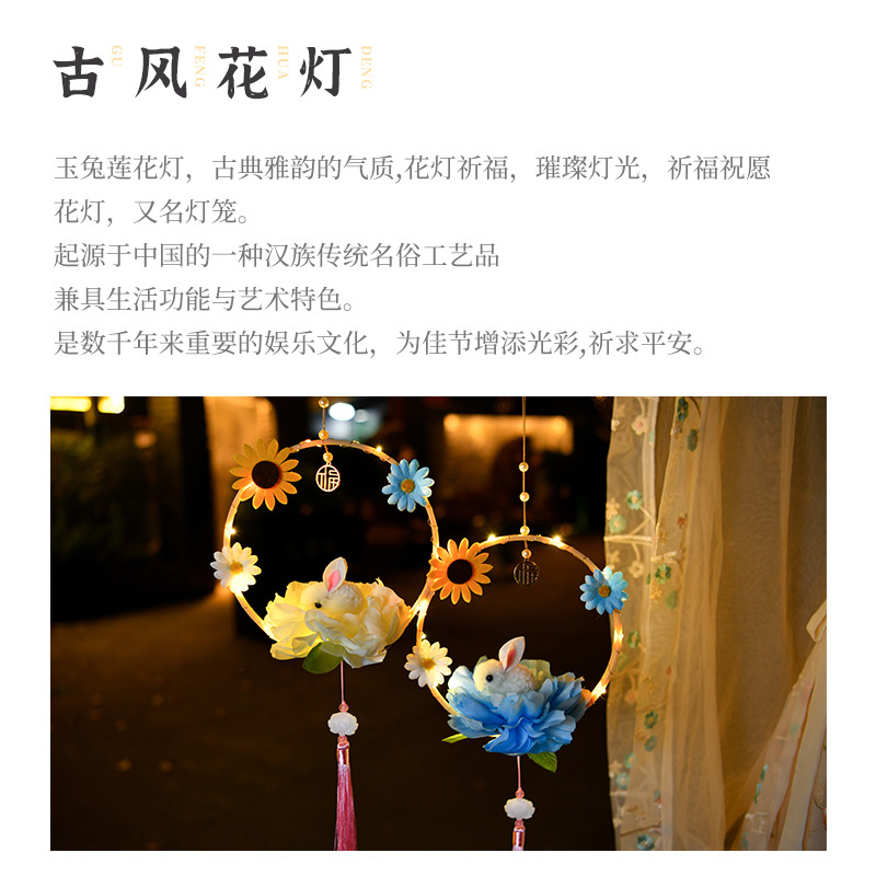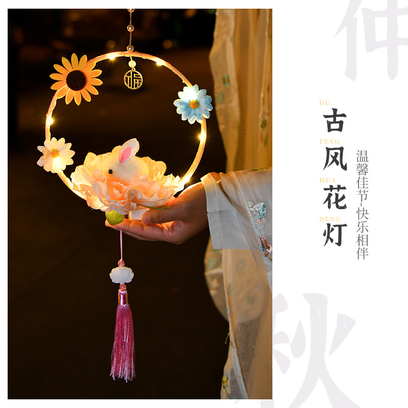 中秋向日葵手提花灯2025新款玉兔子灯儿童手工diy材料包古风灯笼