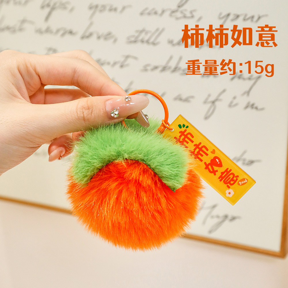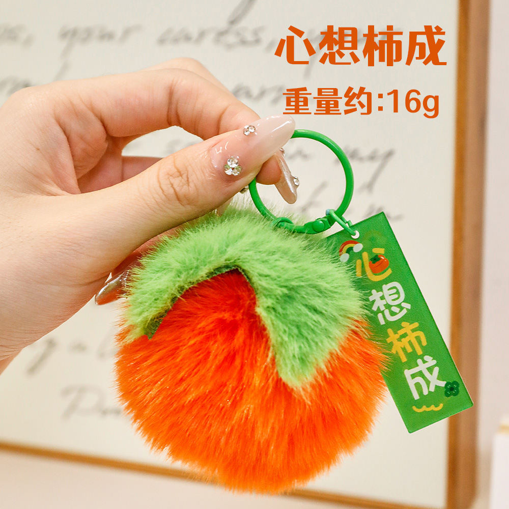 可爱好事发生钥匙扣 学生包包柿子装饰挂件毛绒钥匙圈挂饰小礼品