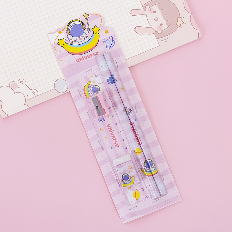 卡通宇航员文具套装小学生礼物学习用品铅笔五件套幼儿园奖品批发