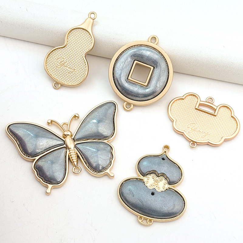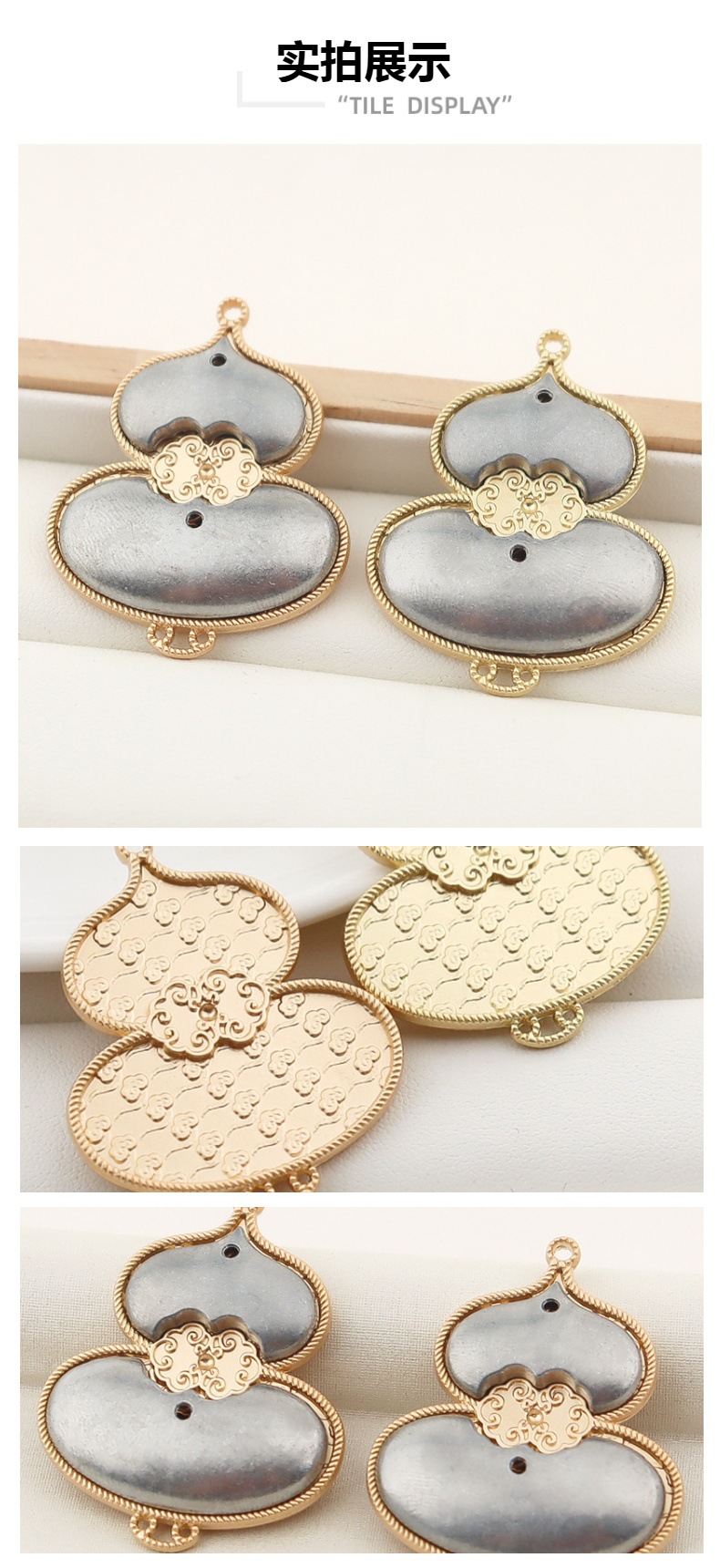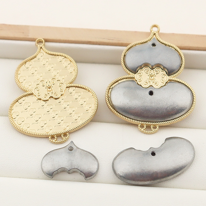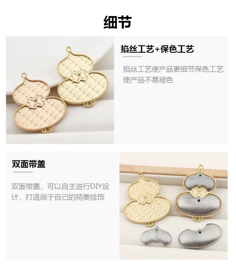 宋锦合金葫芦挂饰保色掐丝工艺双面带盖镶嵌底托饰品配件现货批发