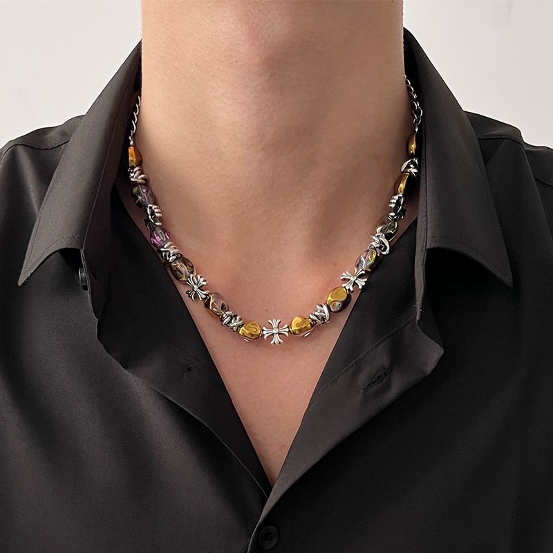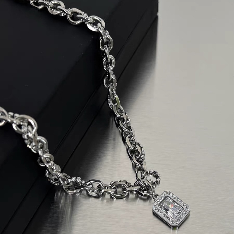 跨境十字架锆石不掉色钛钢项链男士百搭高级感古巴链个性小众项饰