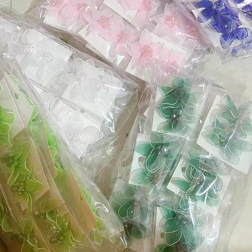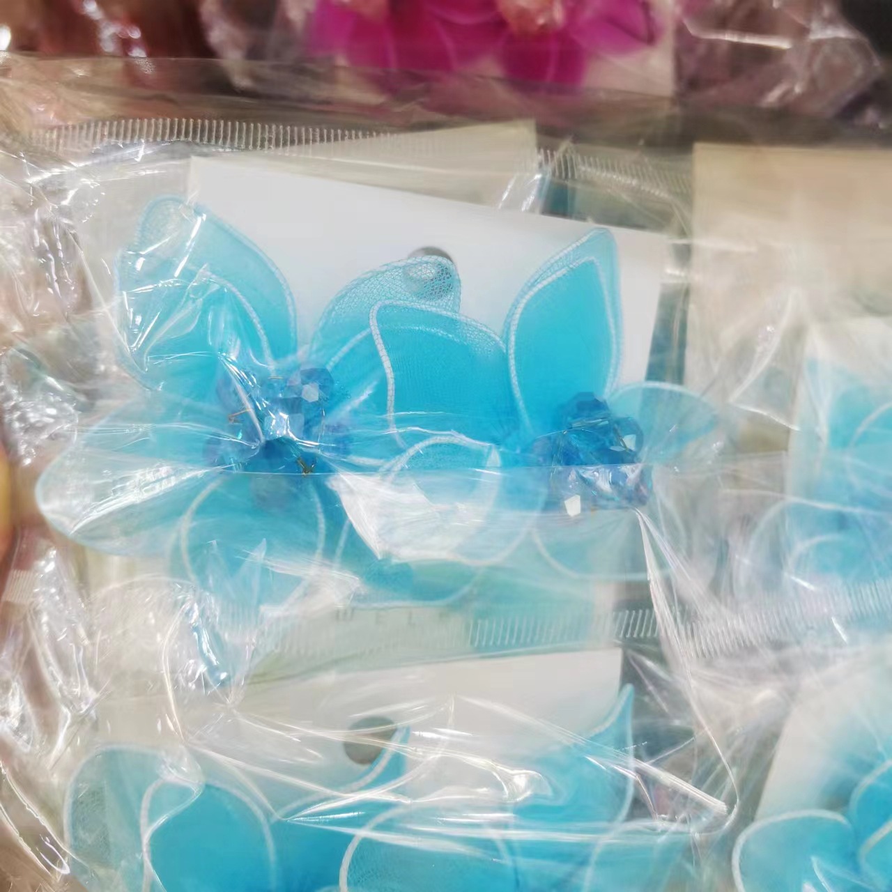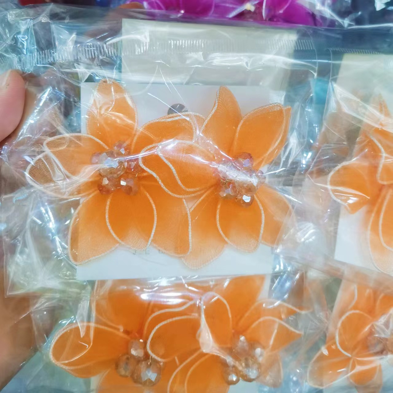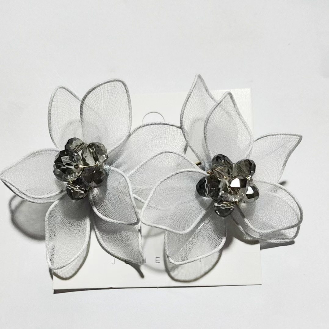 黑色双层水晶双层彩色花朵耳环 网纱手工五瓣花耳饰跨境非洲