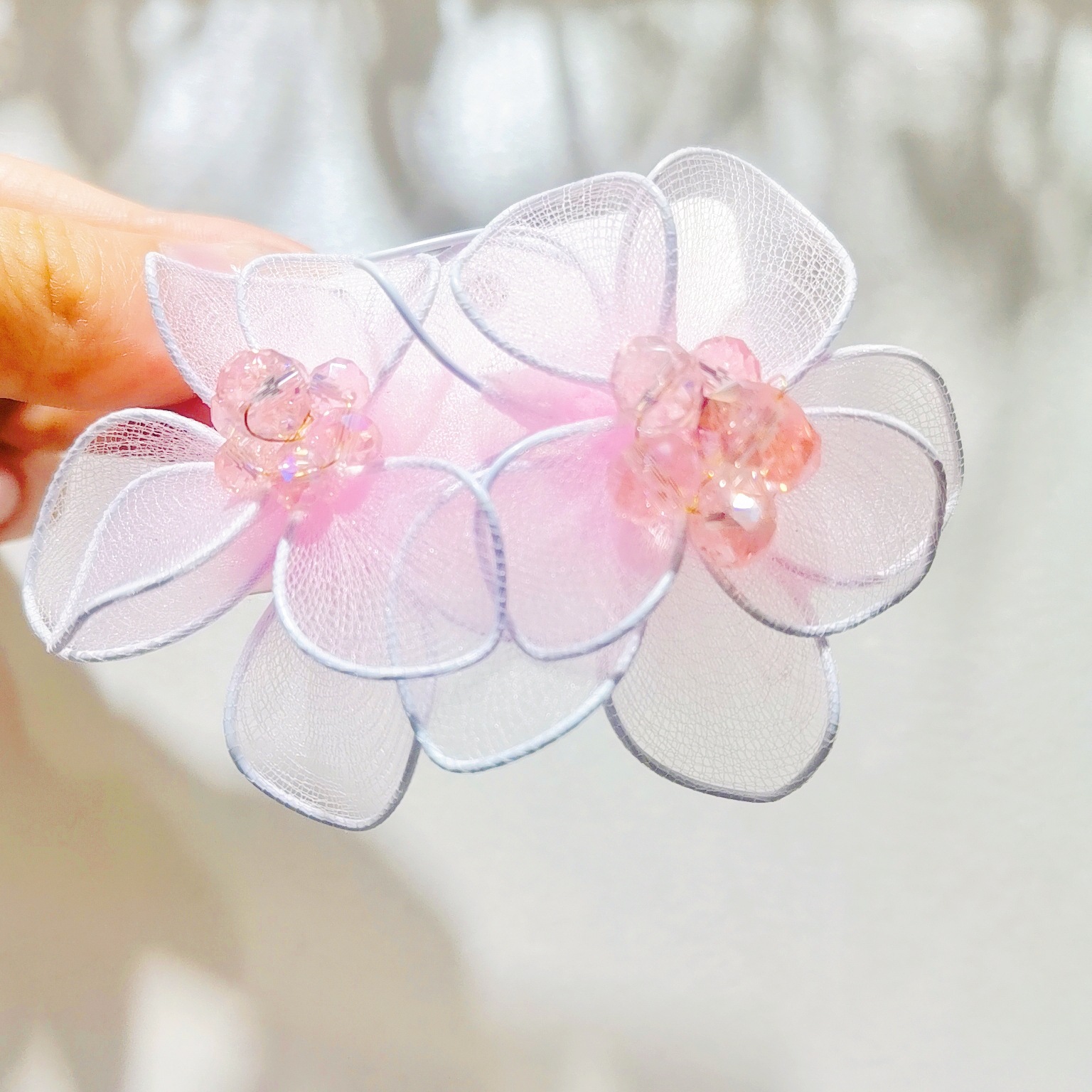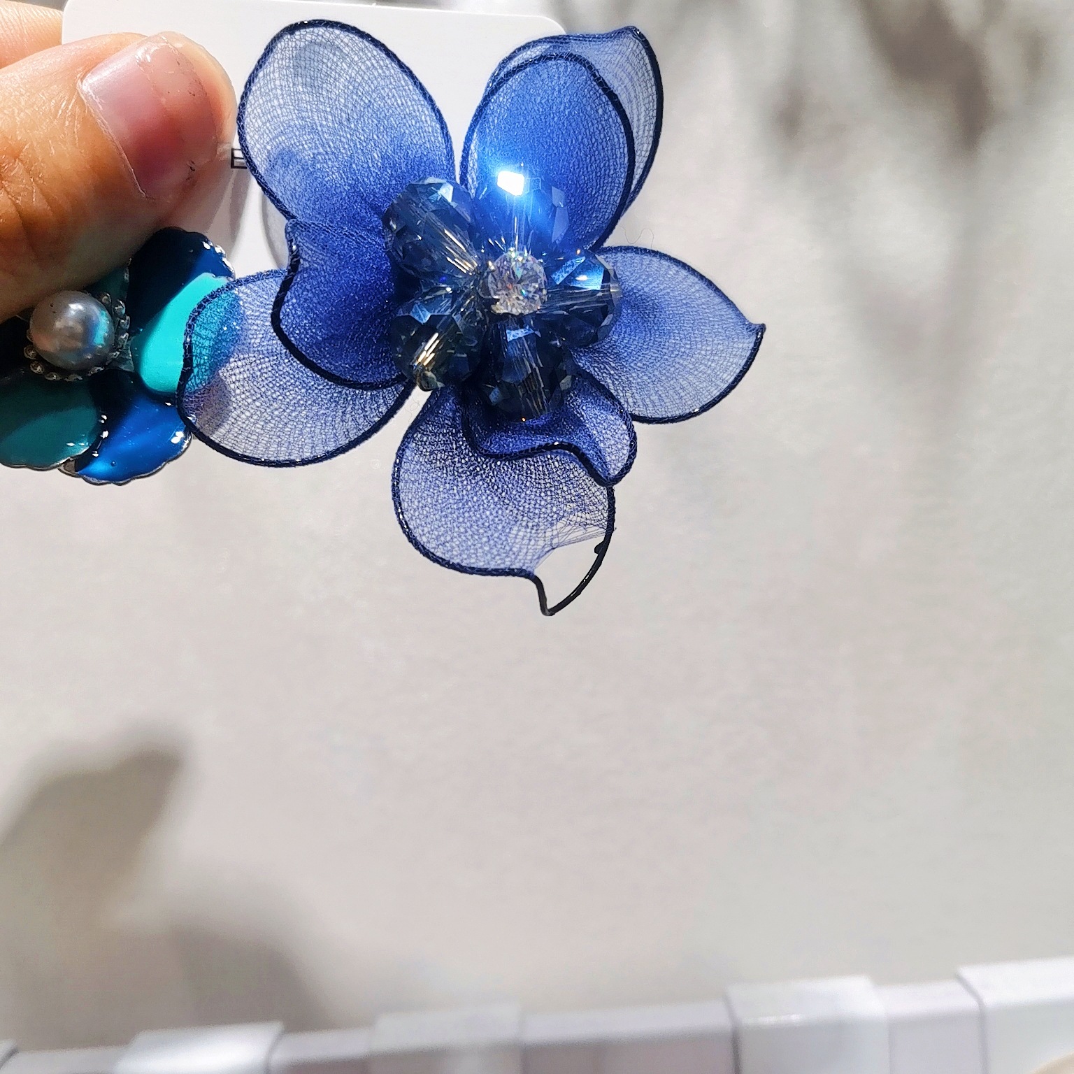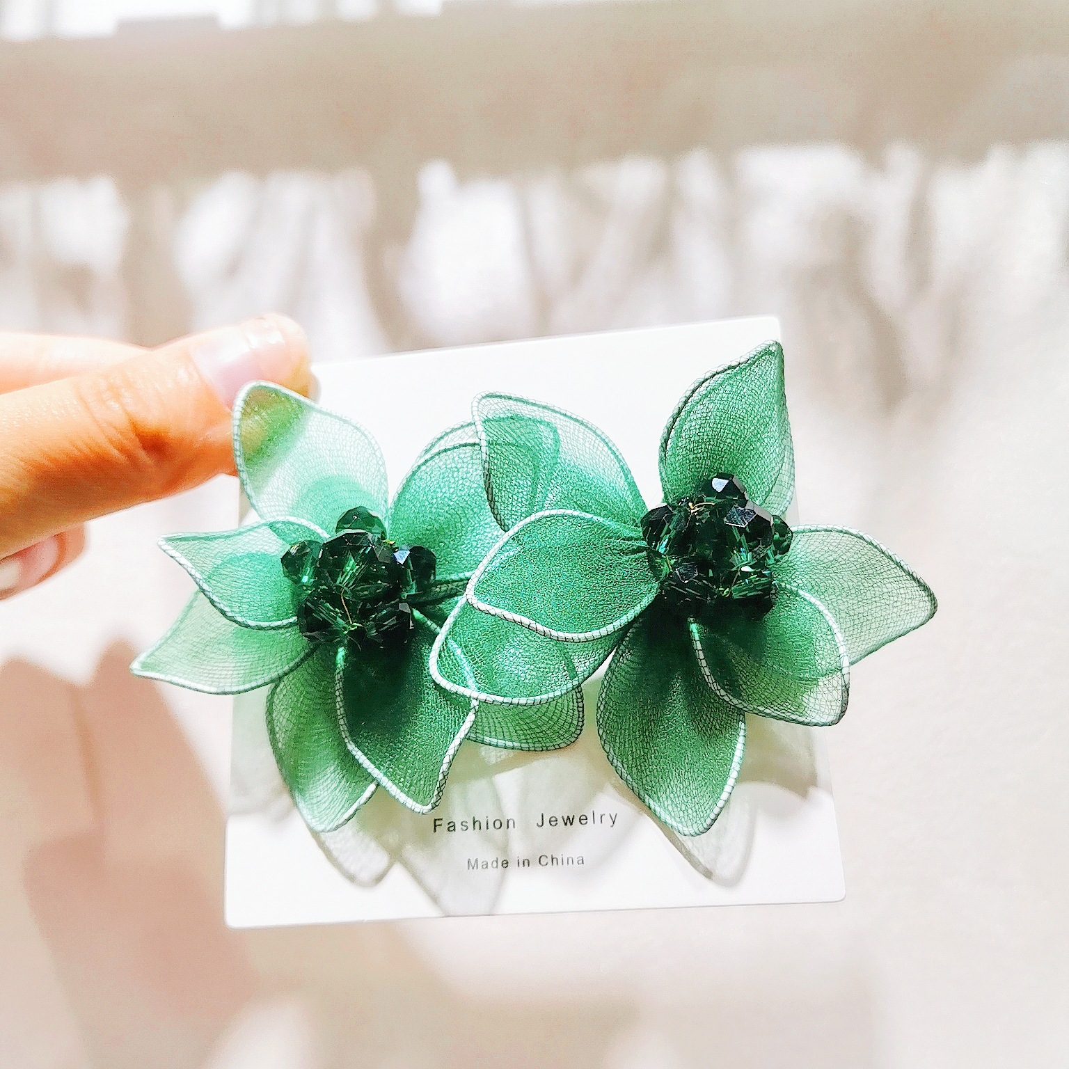 黑色双层水晶双层彩色花朵耳环 网纱手工五瓣花耳饰跨境非洲
