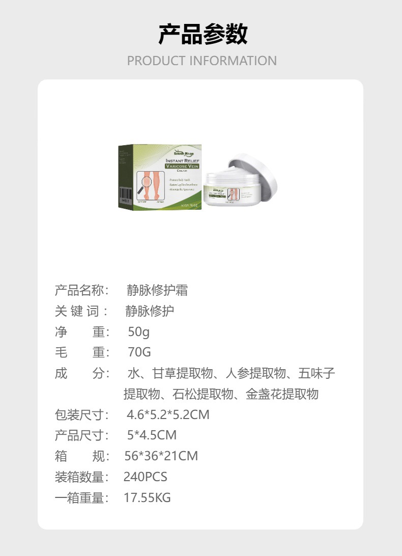 South Moon 静脉修护霜 腿部曲张蚯蚓腿肿胀缓解疼痛按摩护理霜