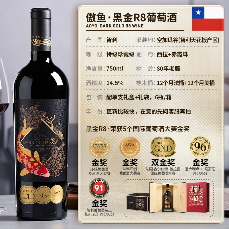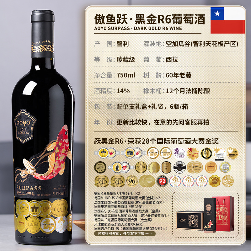 傲鱼智利原装原瓶进口红酒干红葡萄酒水果酒整箱批发送礼线下代理