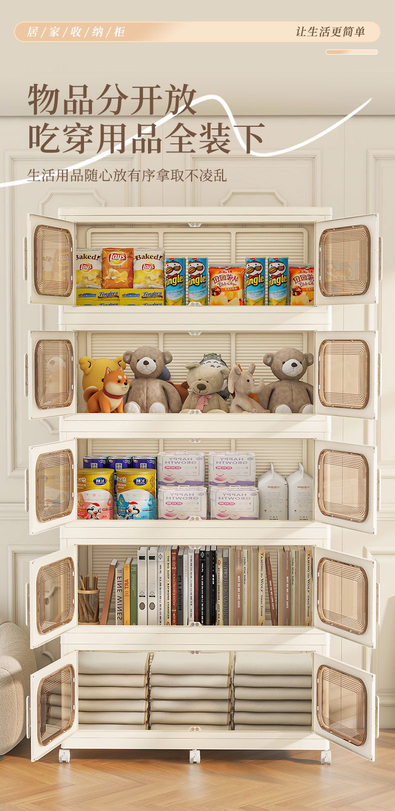 免安装折叠收纳柜多层儿童衣服零食玩具塑料储物柜卧室衣柜置物柜