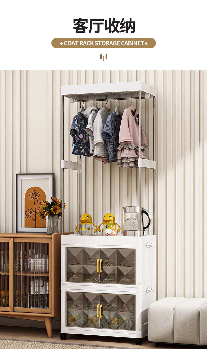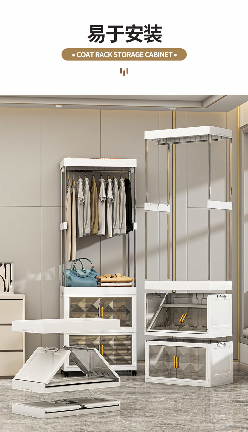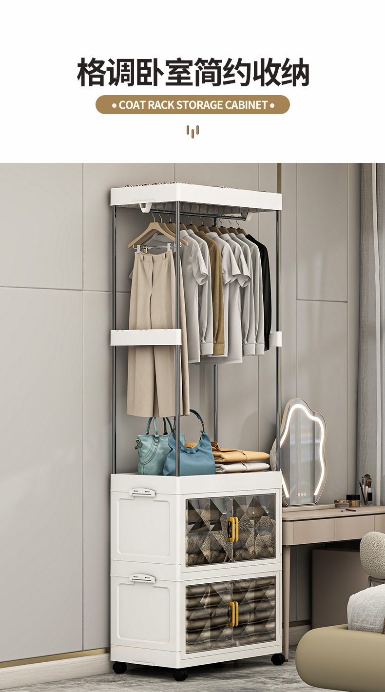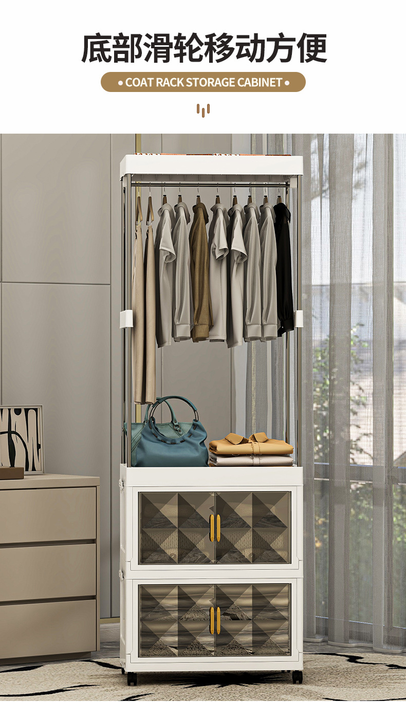 家用衣帽架落地免安装折叠衣柜卧室多功能挂衣架储物柜收纳柜衣橱