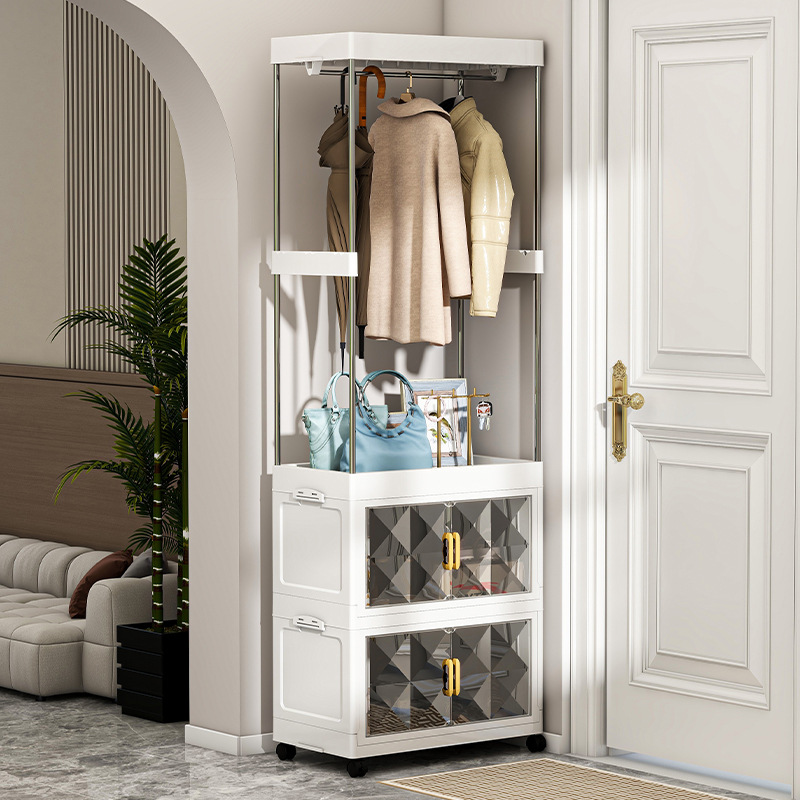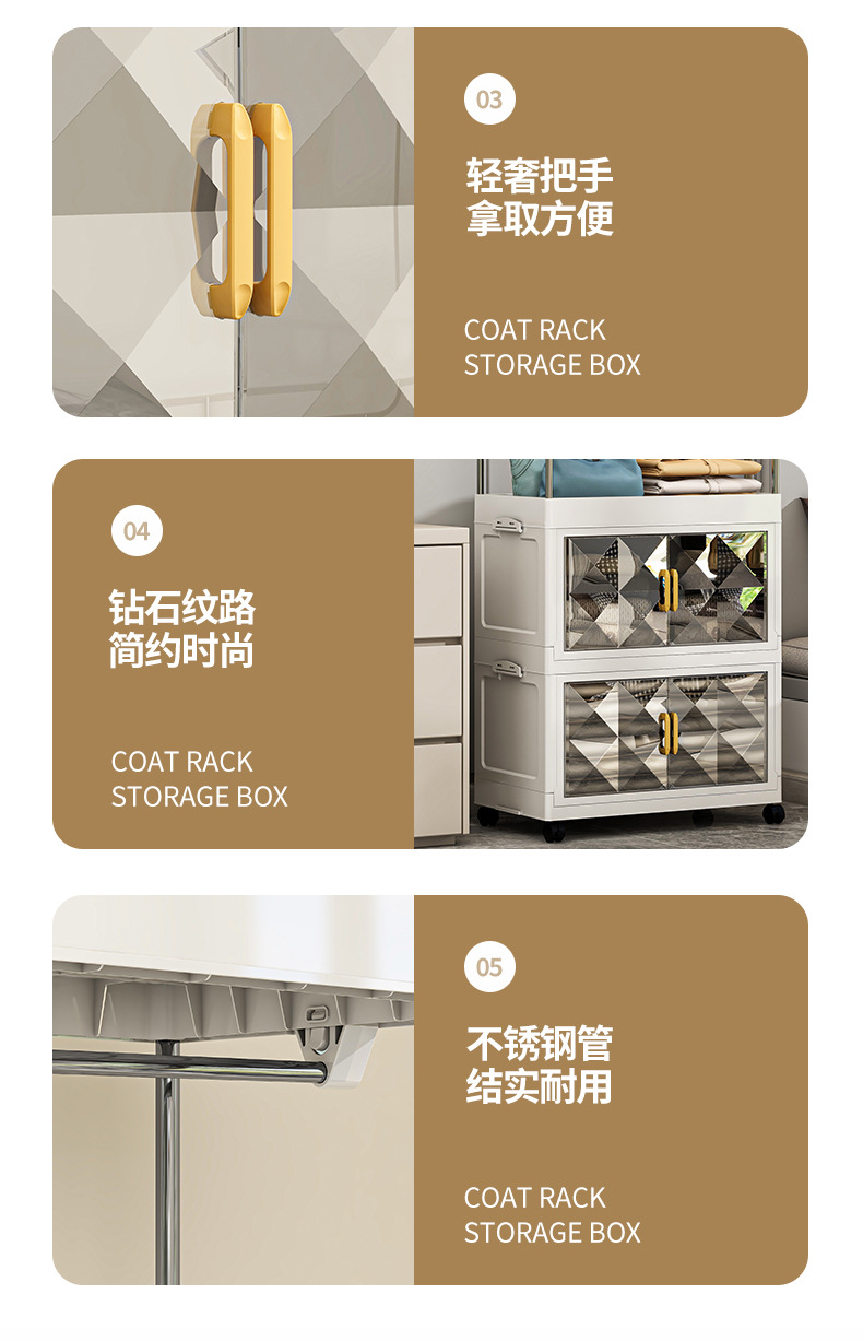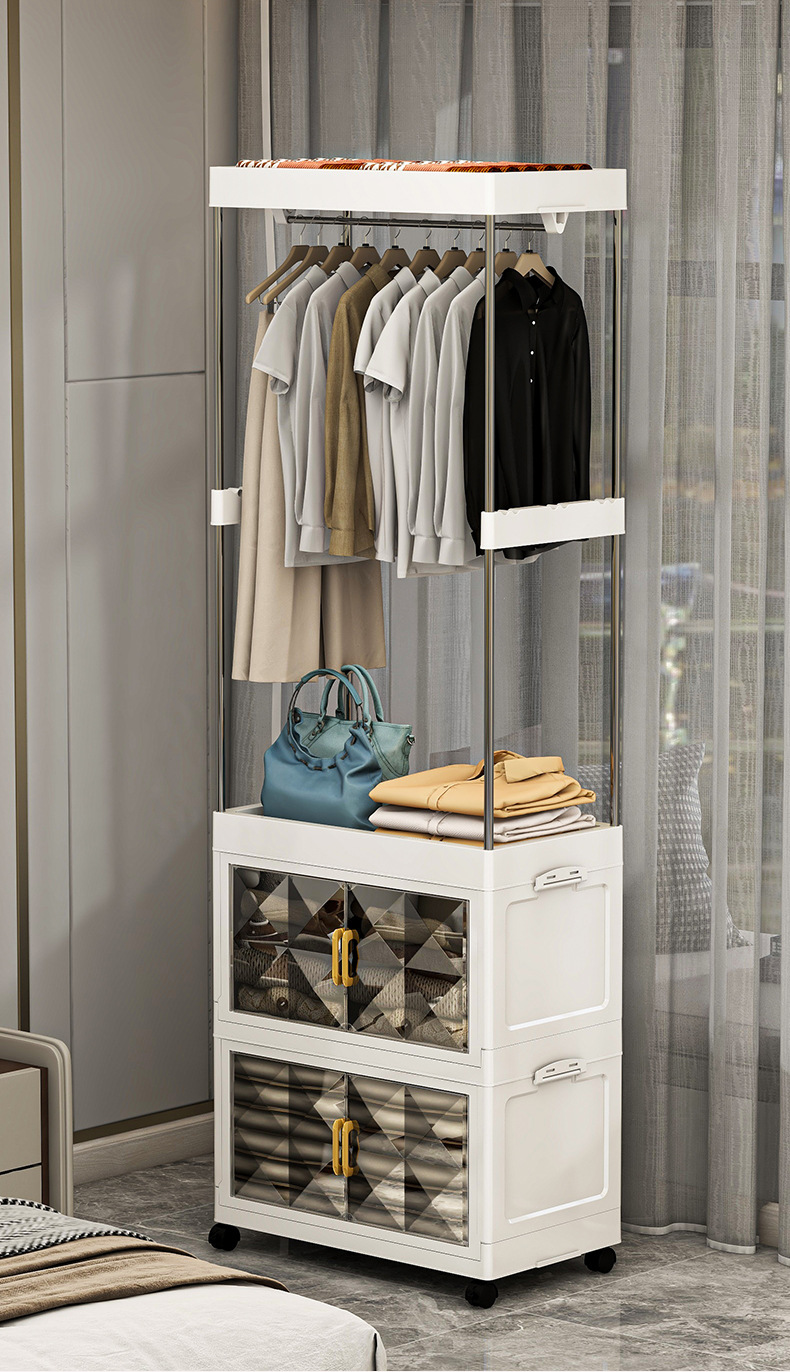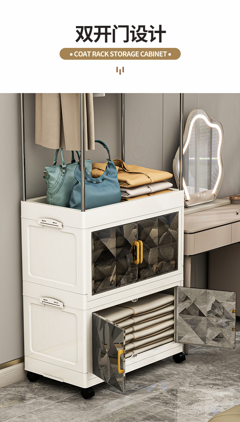 家用衣帽架落地免安装折叠衣柜卧室多功能挂衣架储物柜收纳柜衣橱