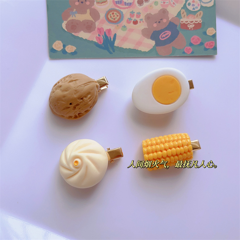 一元地摊搞怪趣味文字发夹网红食物儿童头饰边夹鸭嘴夹零食饮料女