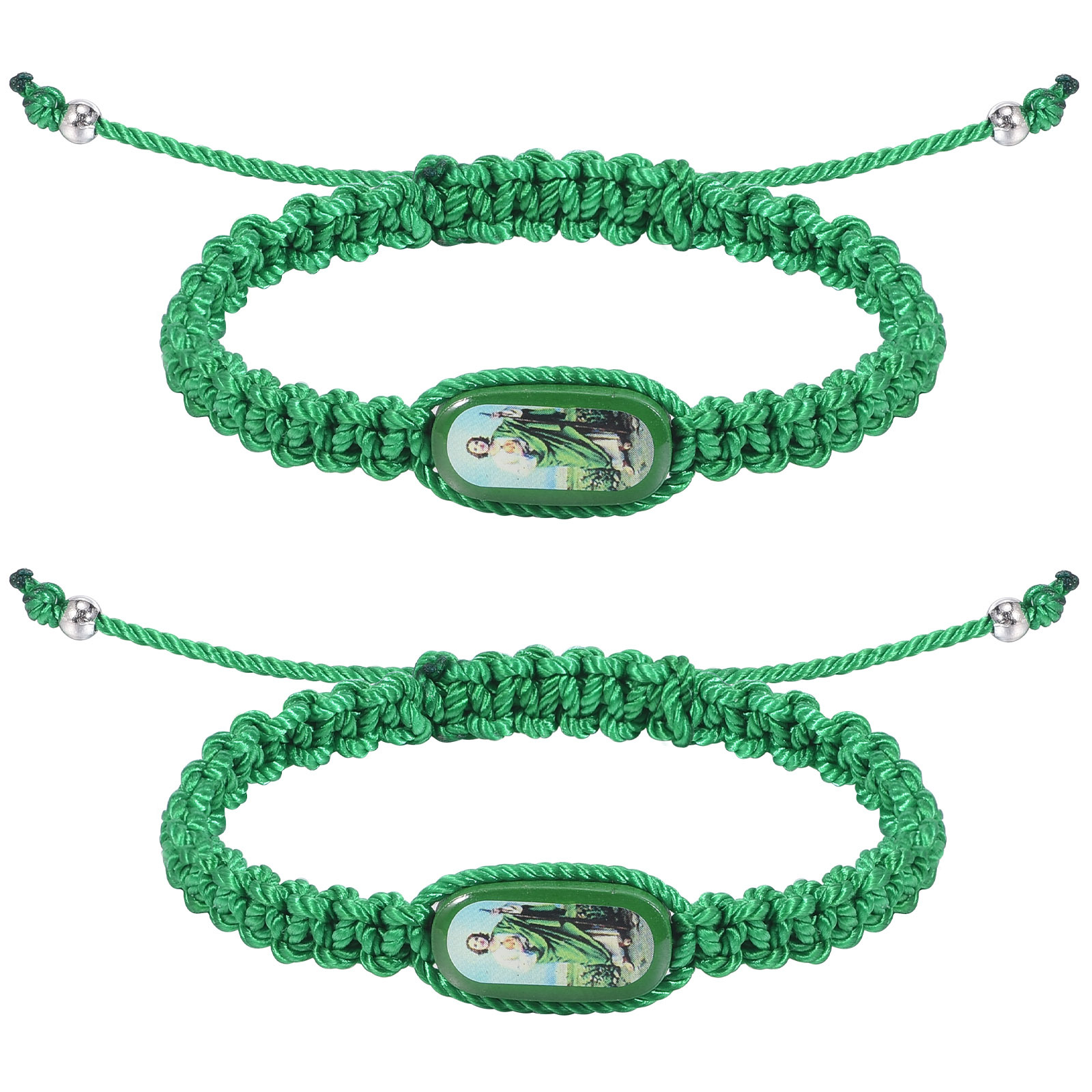 欧美跨境爆款手工编织可调节绿色木片滴油圣裘德祈祷手链批发