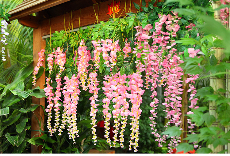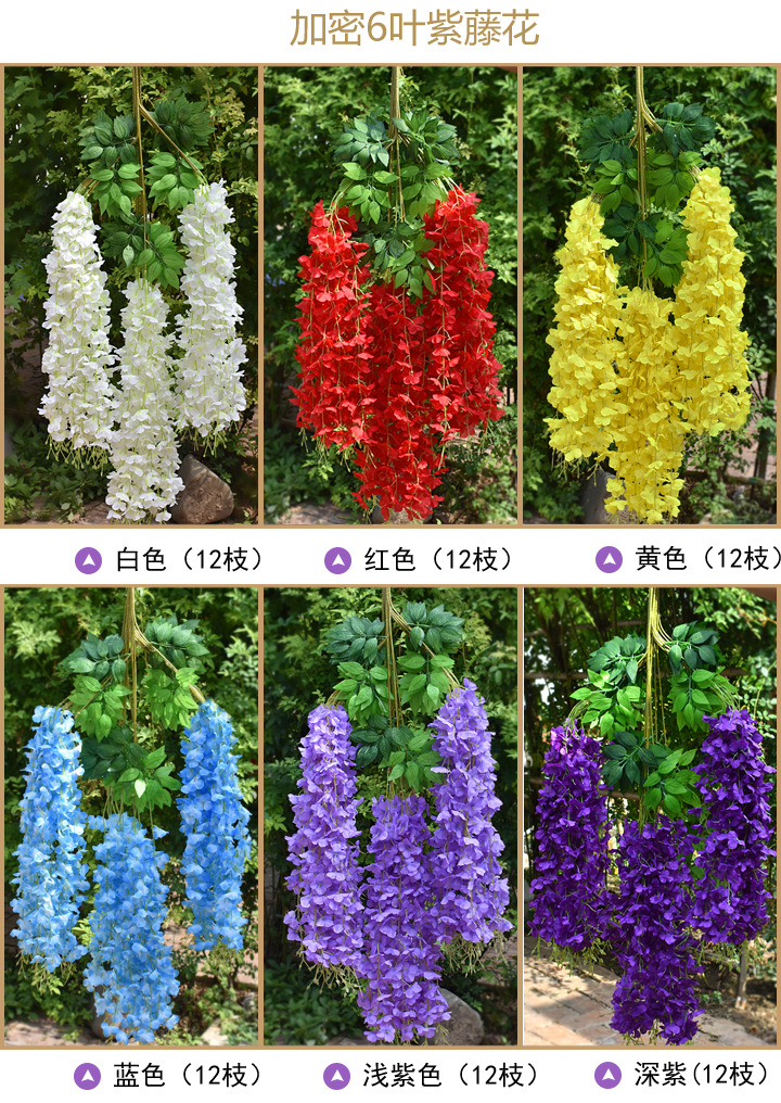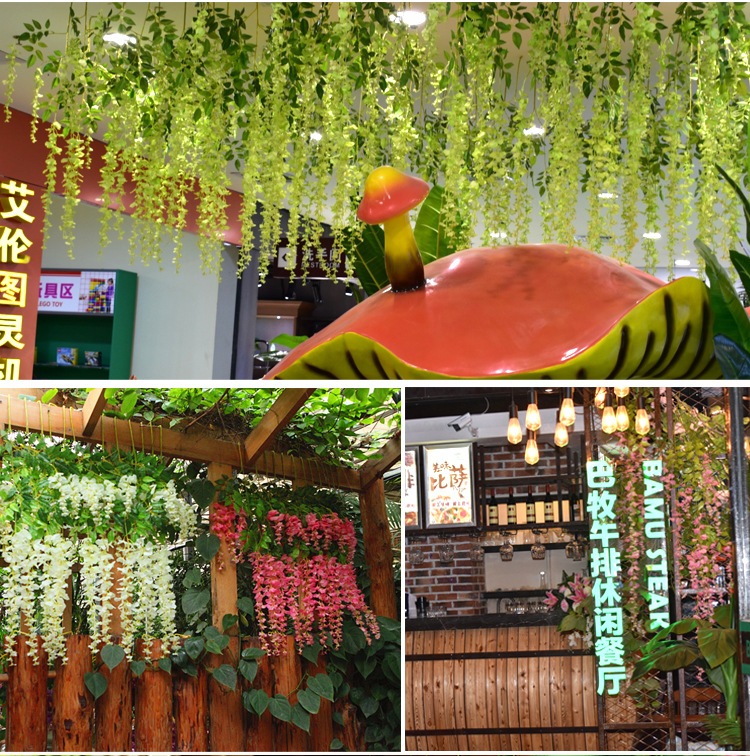 跨境仿真紫藤花 婚庆豆花树枝 吊顶网红长廊装饰假花商场花串花藤