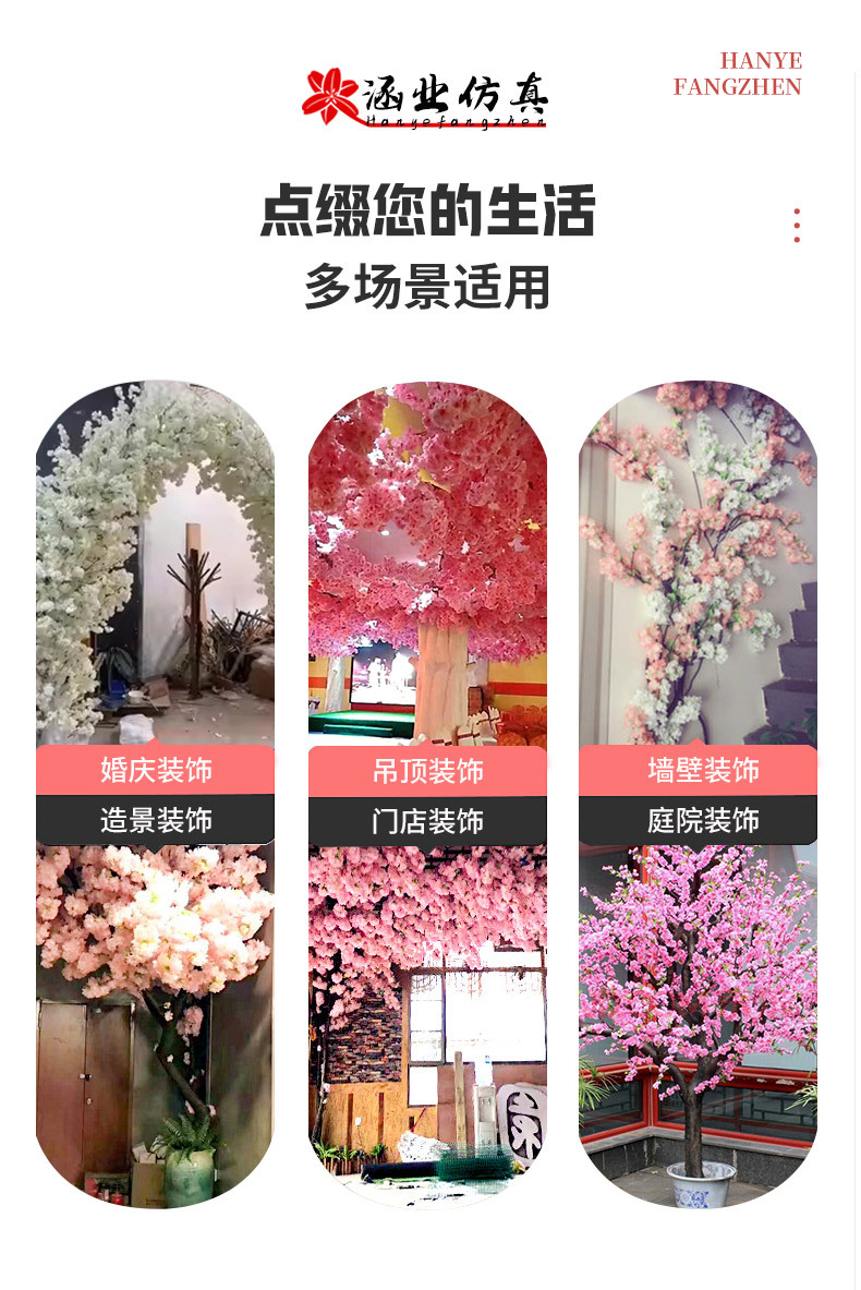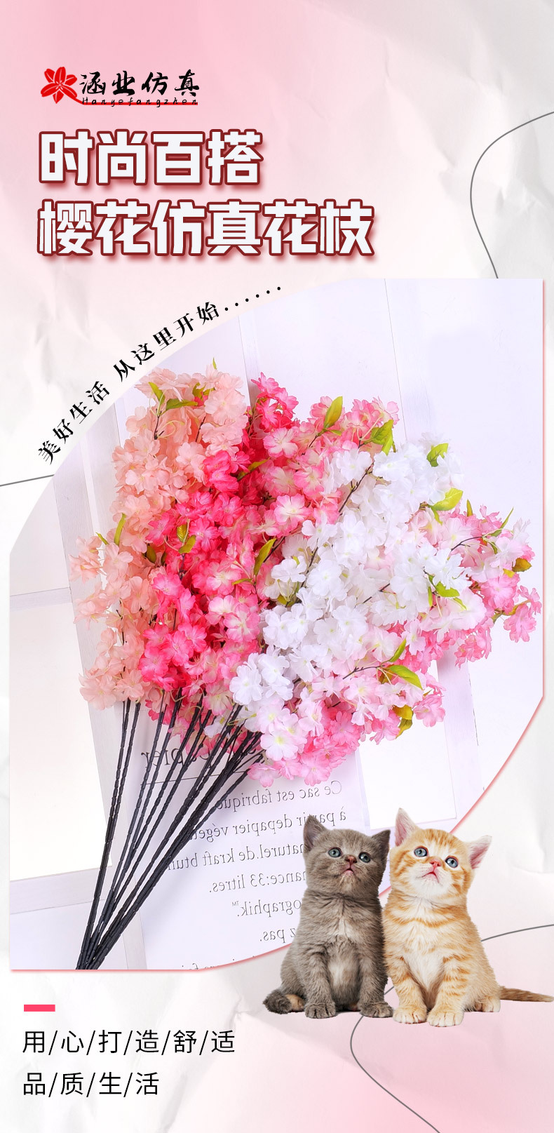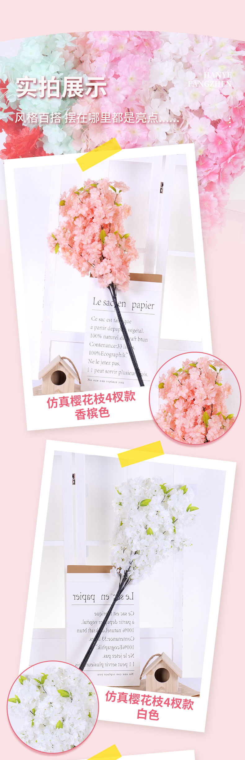 仿真加密3杈4杈樱花枝婚庆装饰室内客厅落地吊顶假花绢花樱花树枝