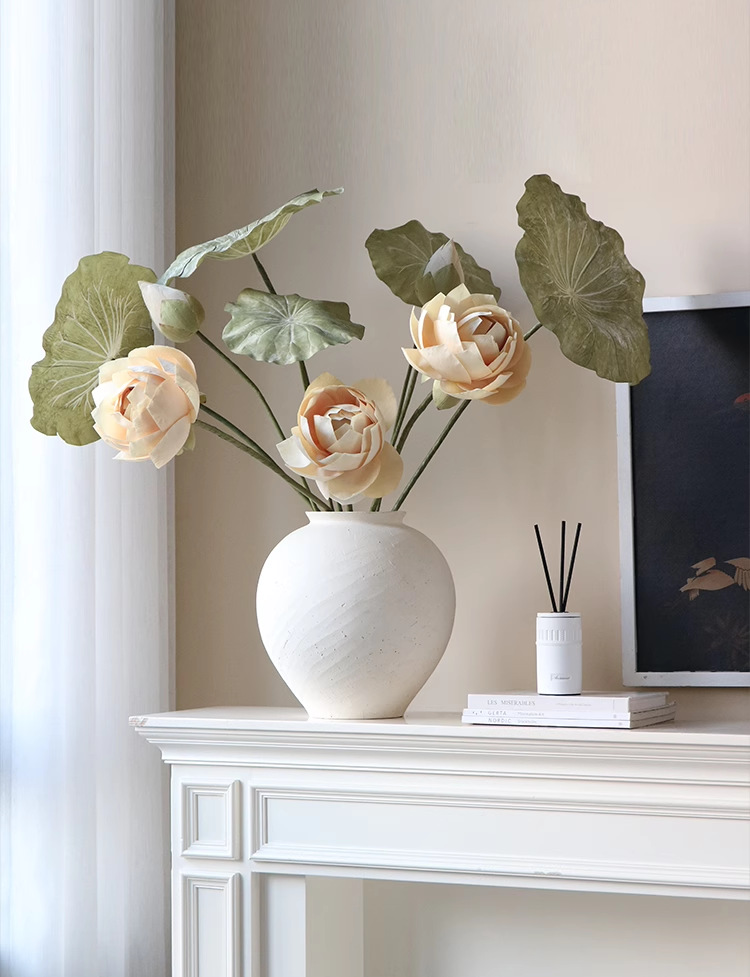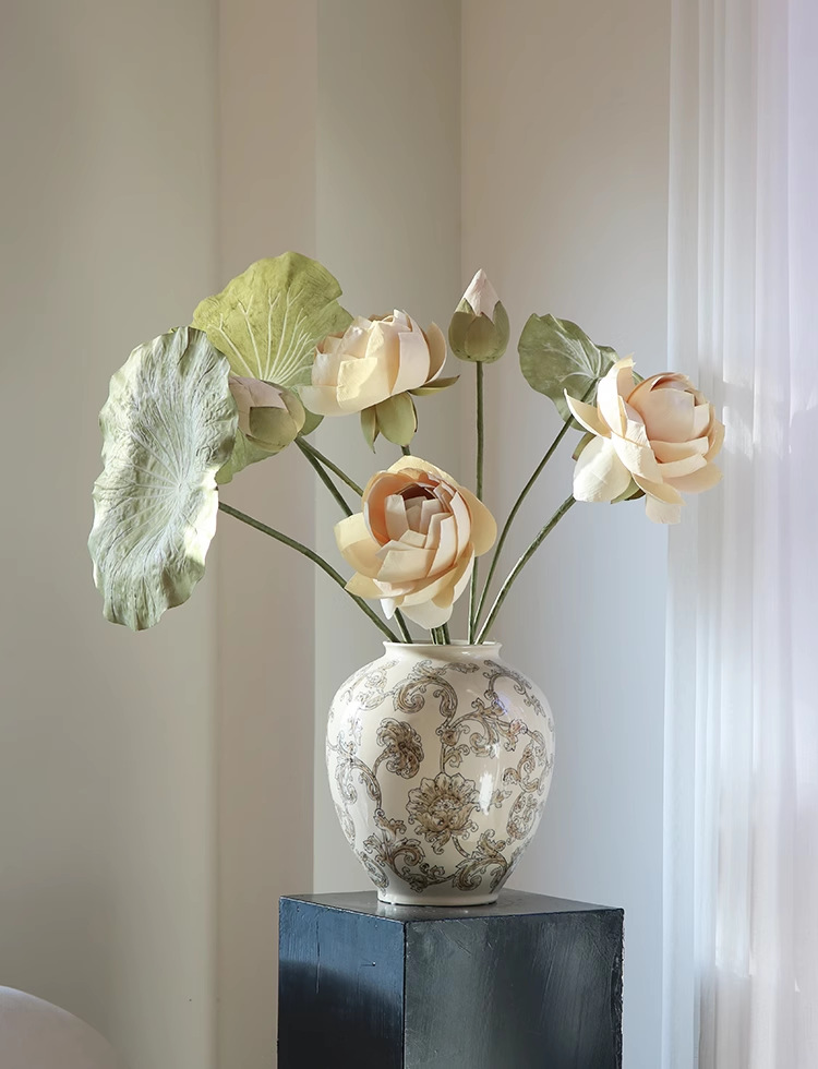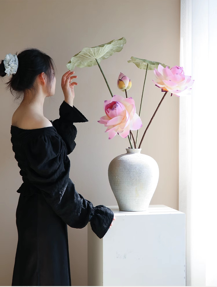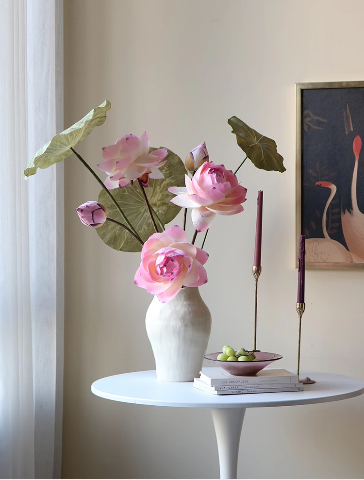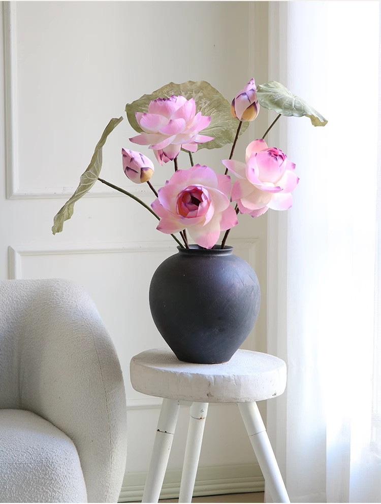 博西家居侘寂风干花荷花莲花大花束仿真花高级感逼真复古假花摆设