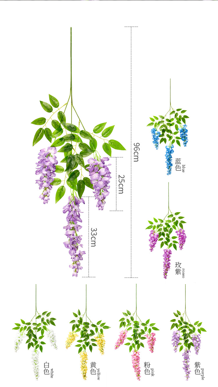 跨境热销仿真紫藤花阿勃勒仿真花缠绕吊顶塑料花假花藤条装饰豆花