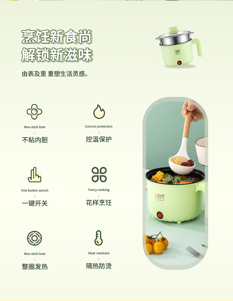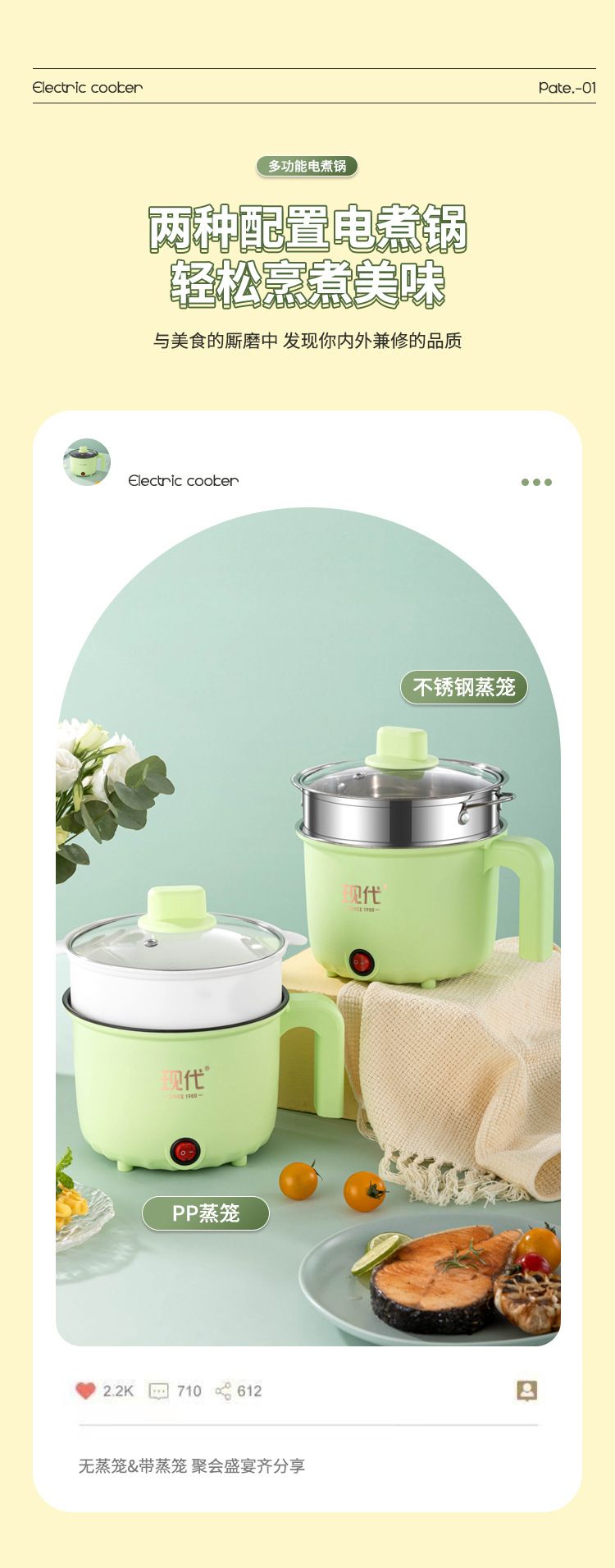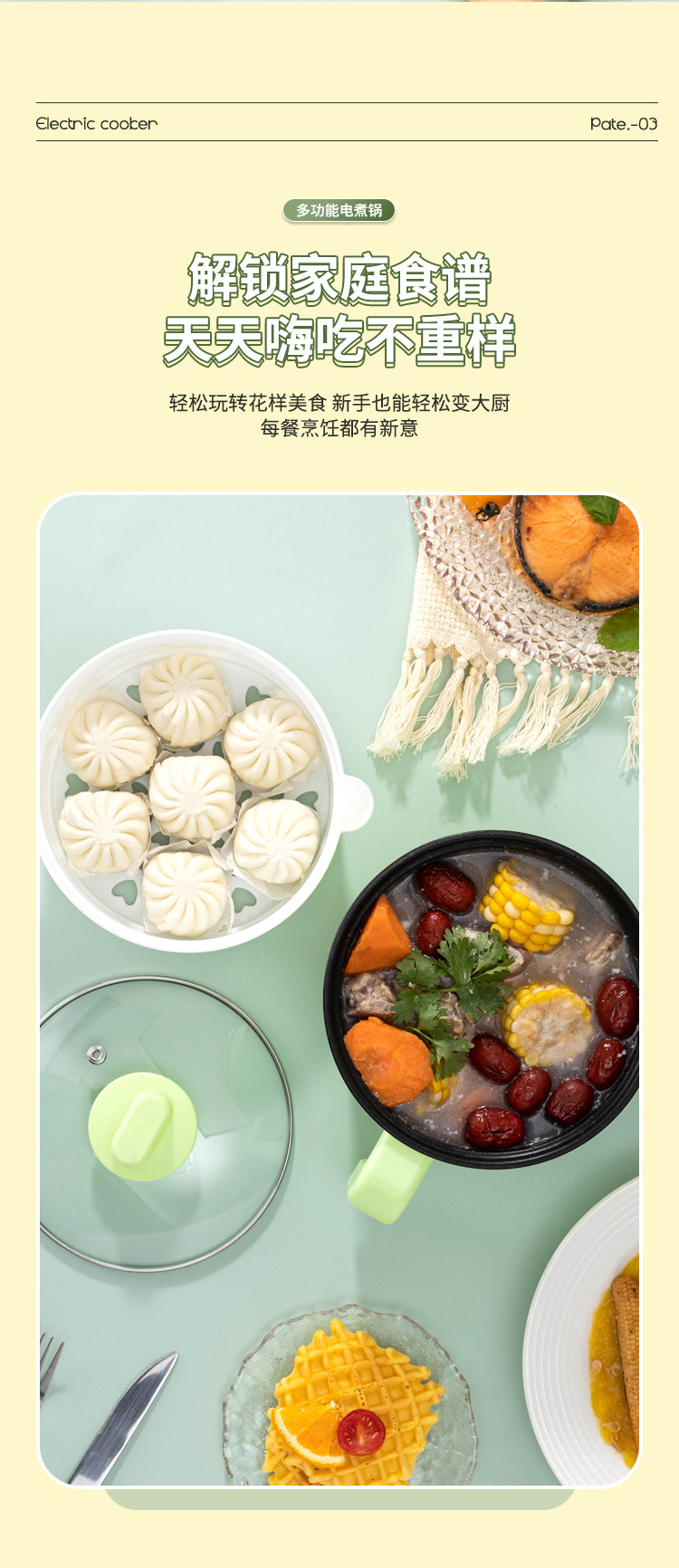 粤帝斯直供 电煮锅多功能一体锅宿舍小电锅多功能迷你泡面锅 代发