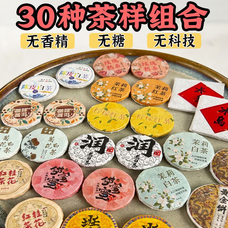 【糯糯香茶批发】33款式白茶熟茶绿茶洱茶红茶抖音对对碰茶饼批发