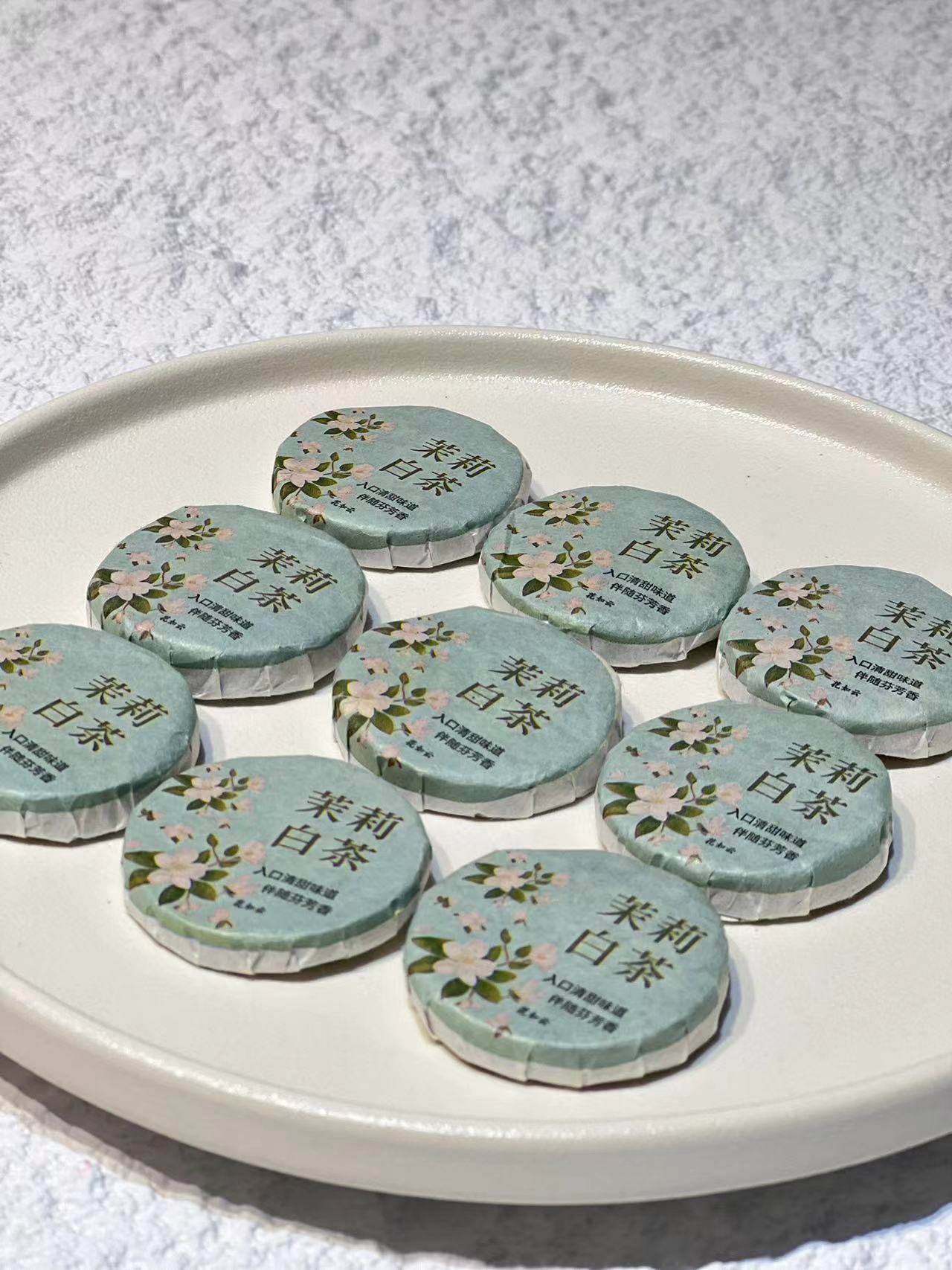 jasmine pu'er raw tea 0.50kg(茉莉青饼1斤) USD $0.0 6666631 jin available