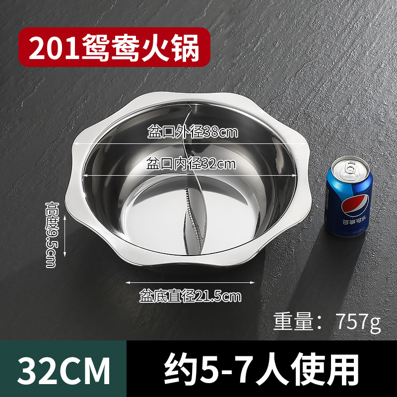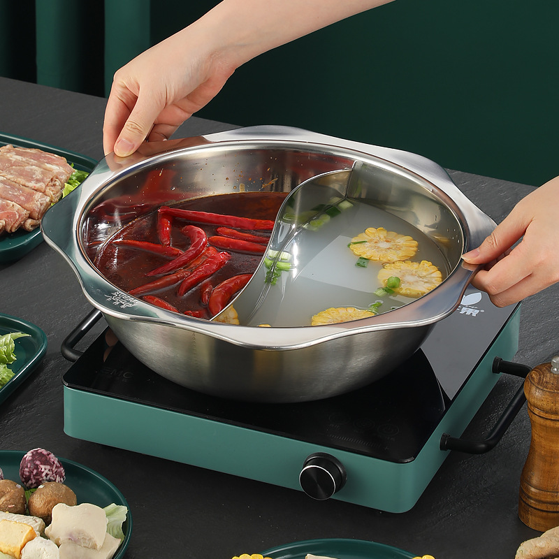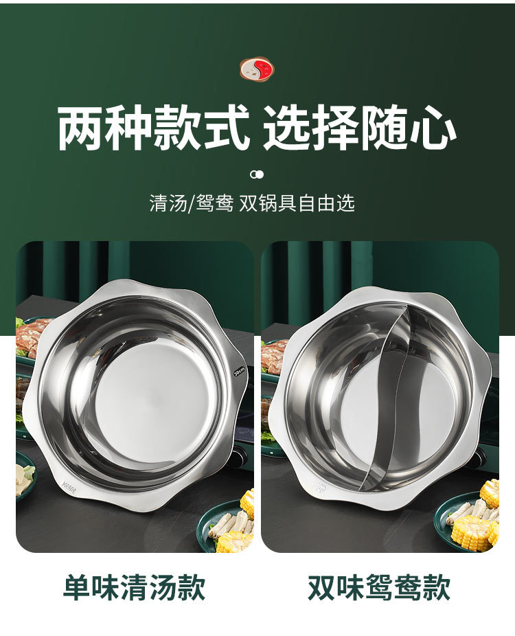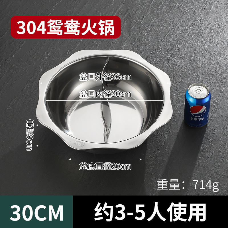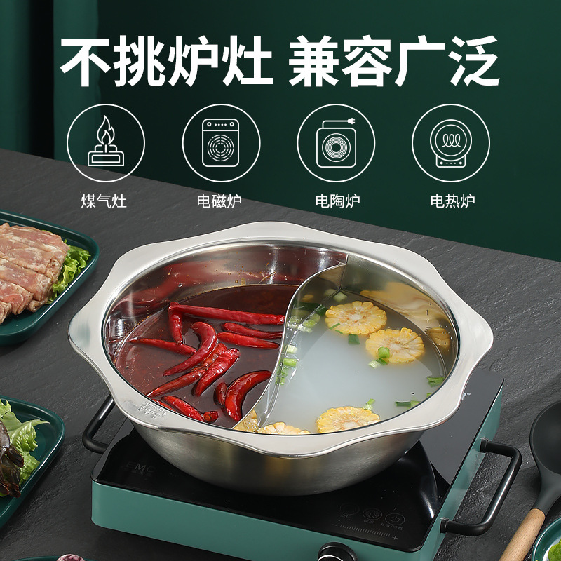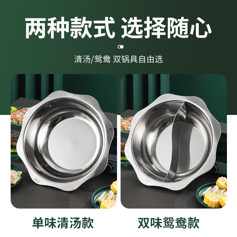 304加厚不锈钢鸳鸯锅清汤火锅盆家用火锅商用电磁炉明火餐厅干锅