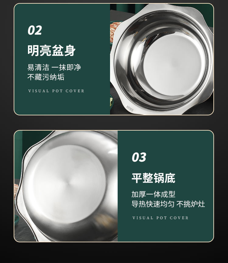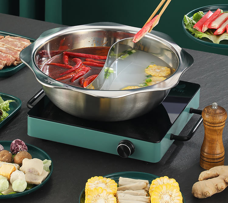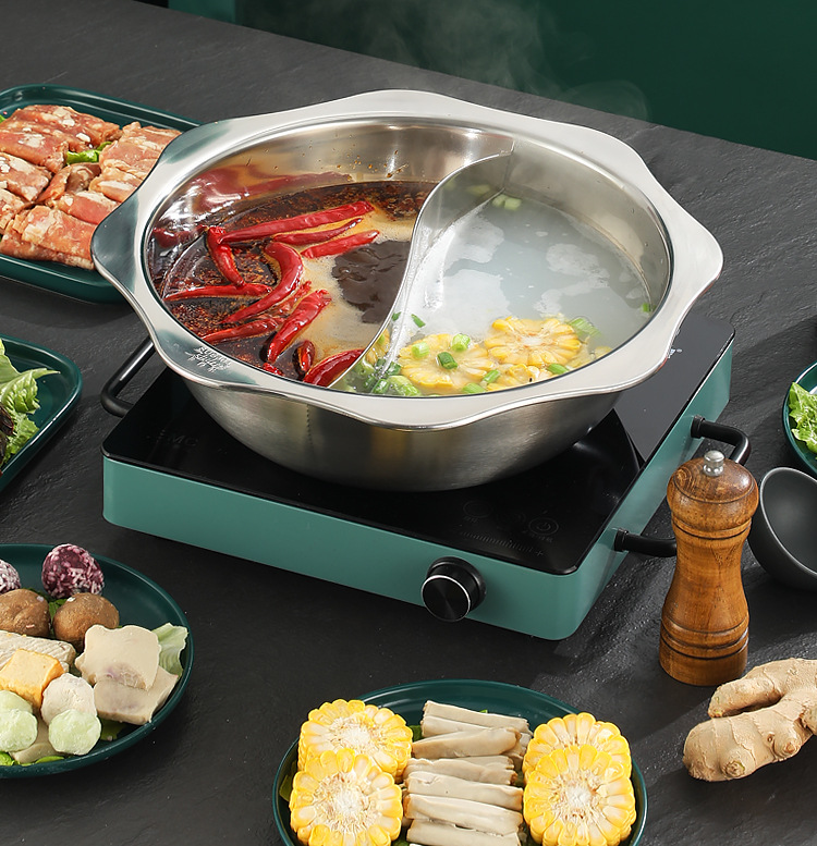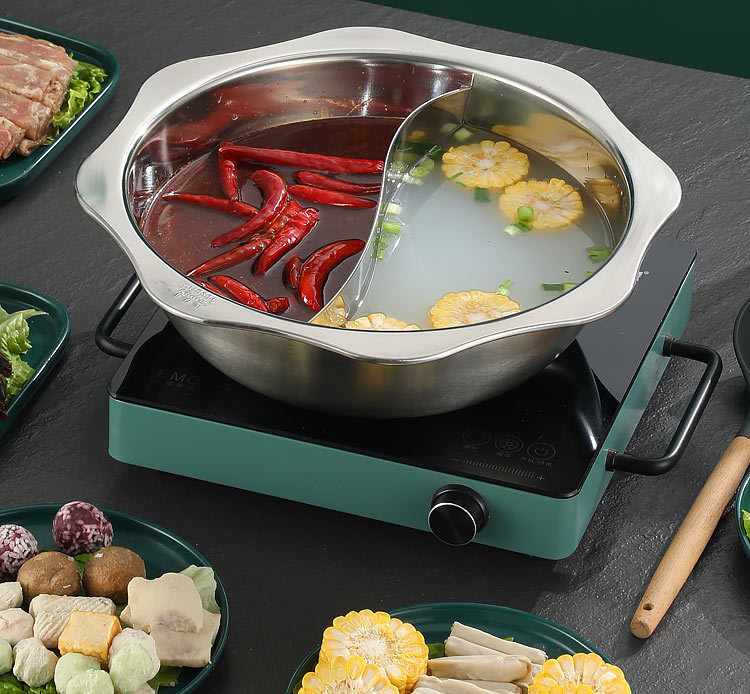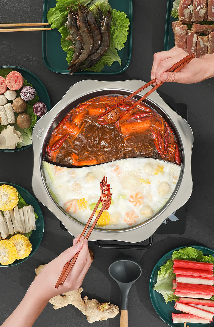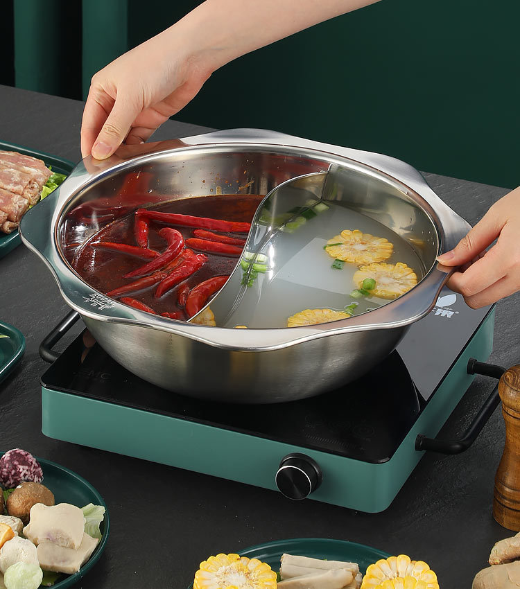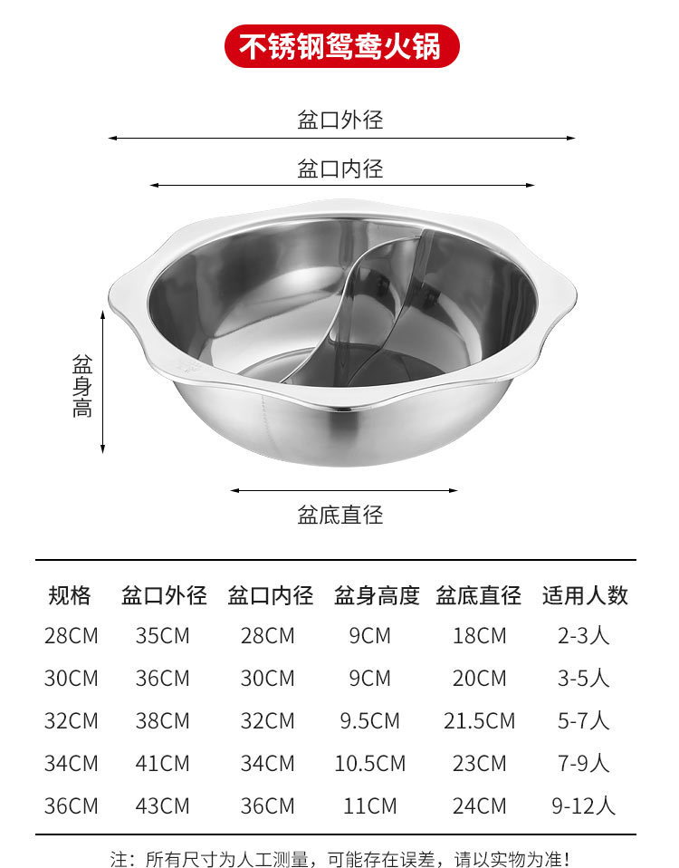 304加厚不锈钢鸳鸯锅清汤火锅盆家用火锅商用电磁炉明火餐厅干锅