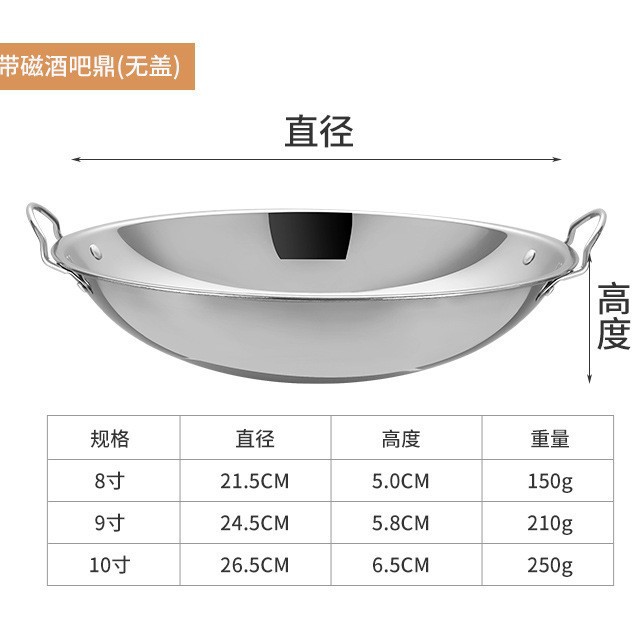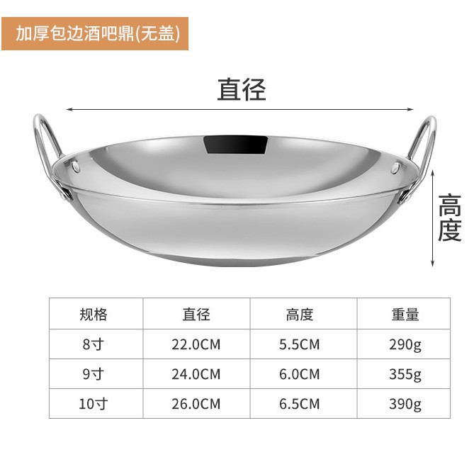 不锈钢锅仔加厚双耳小火锅干锅干捞海鲜锅酒精炉防溢带盖酒吧鼎