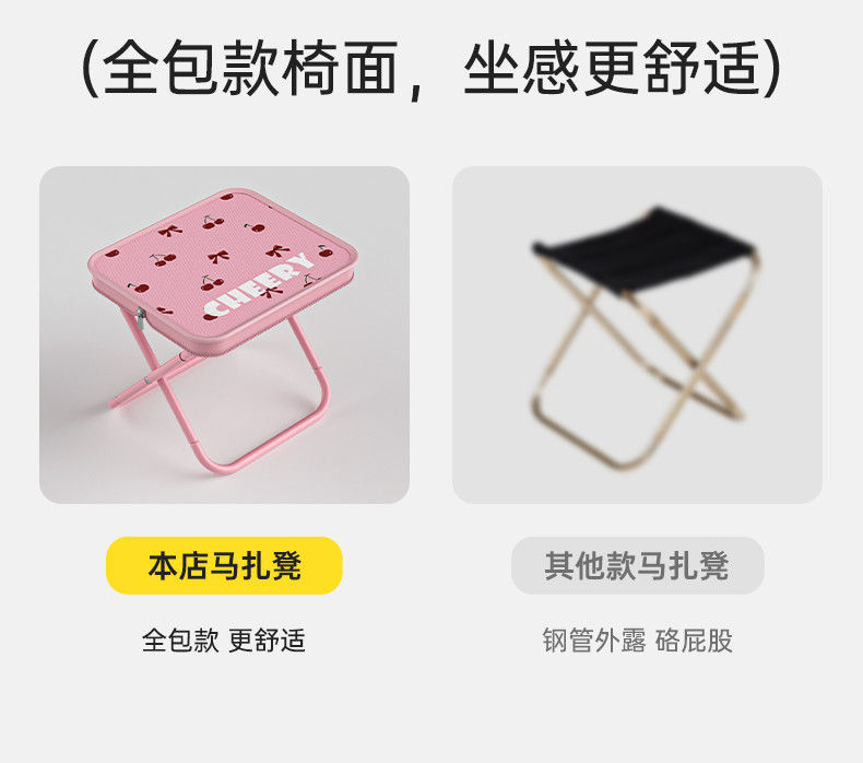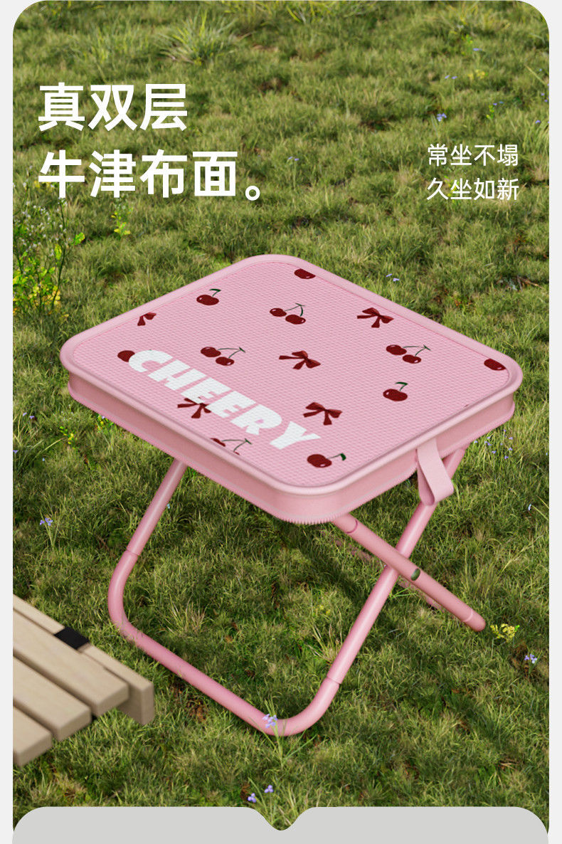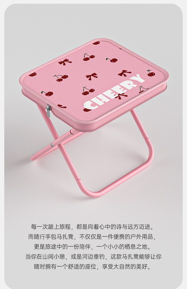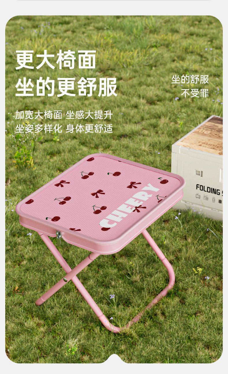 折叠凳樱桃印花户外椅子便携式露营钓鱼排队背带式笔袋板凳小马扎
