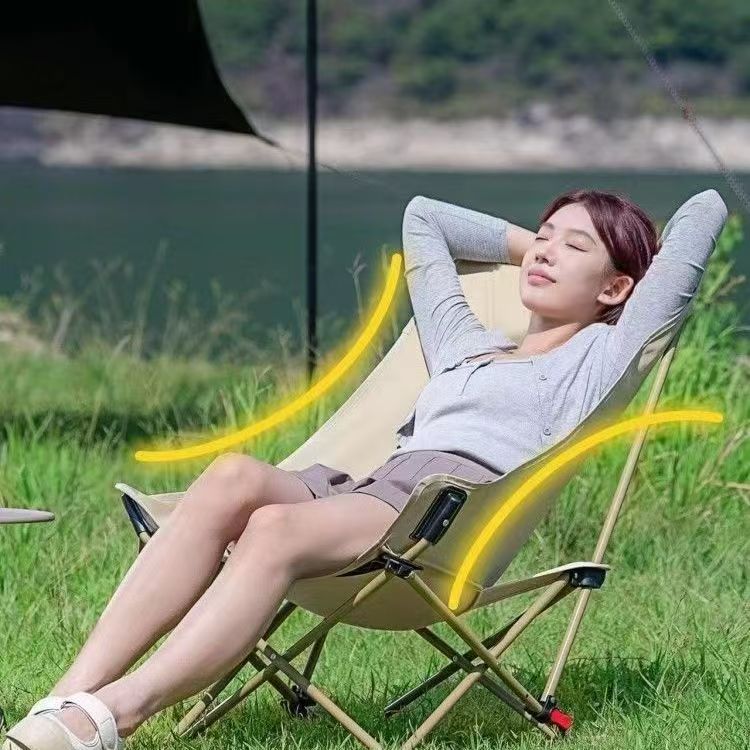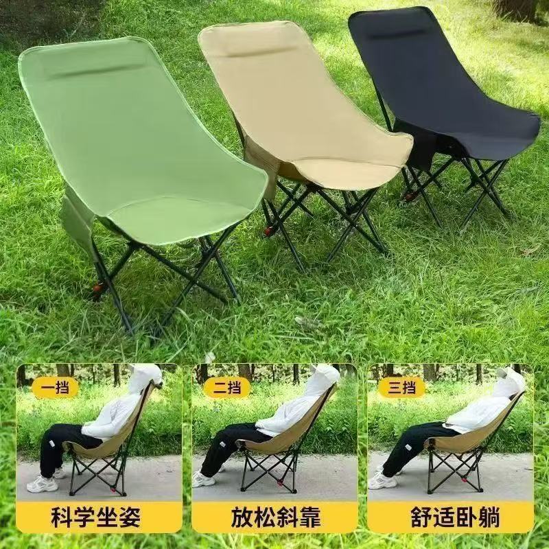 outdoor folding chair portable camping chair moon chair office lunch break three-gear adjustable recliner fishing chair