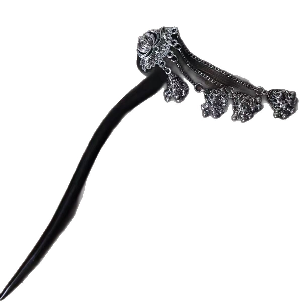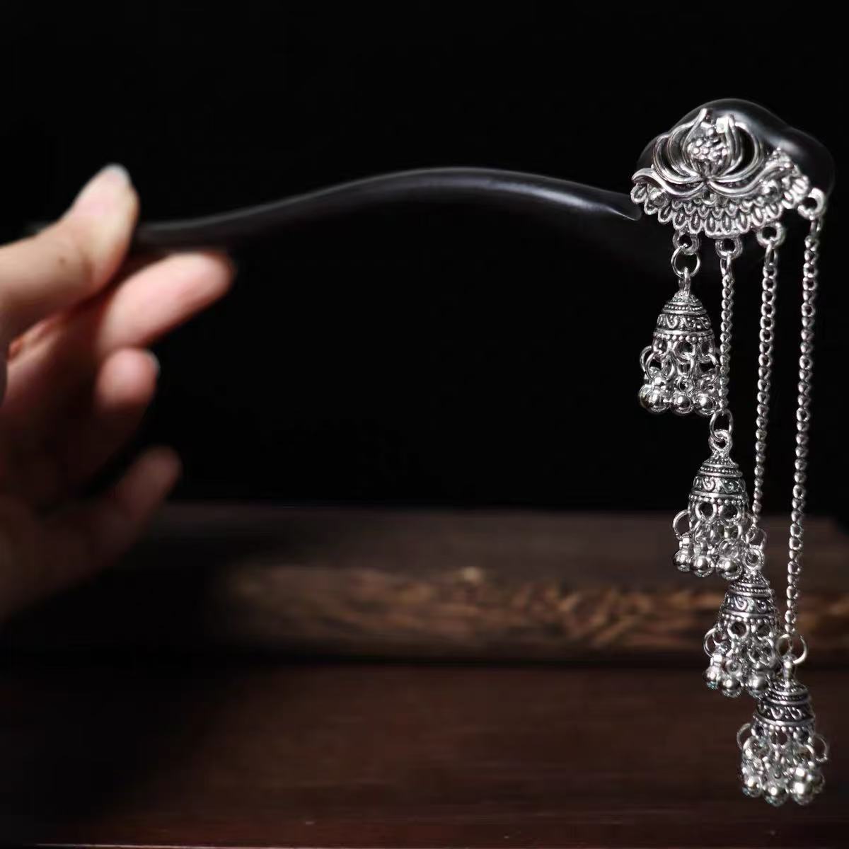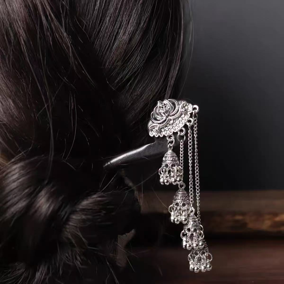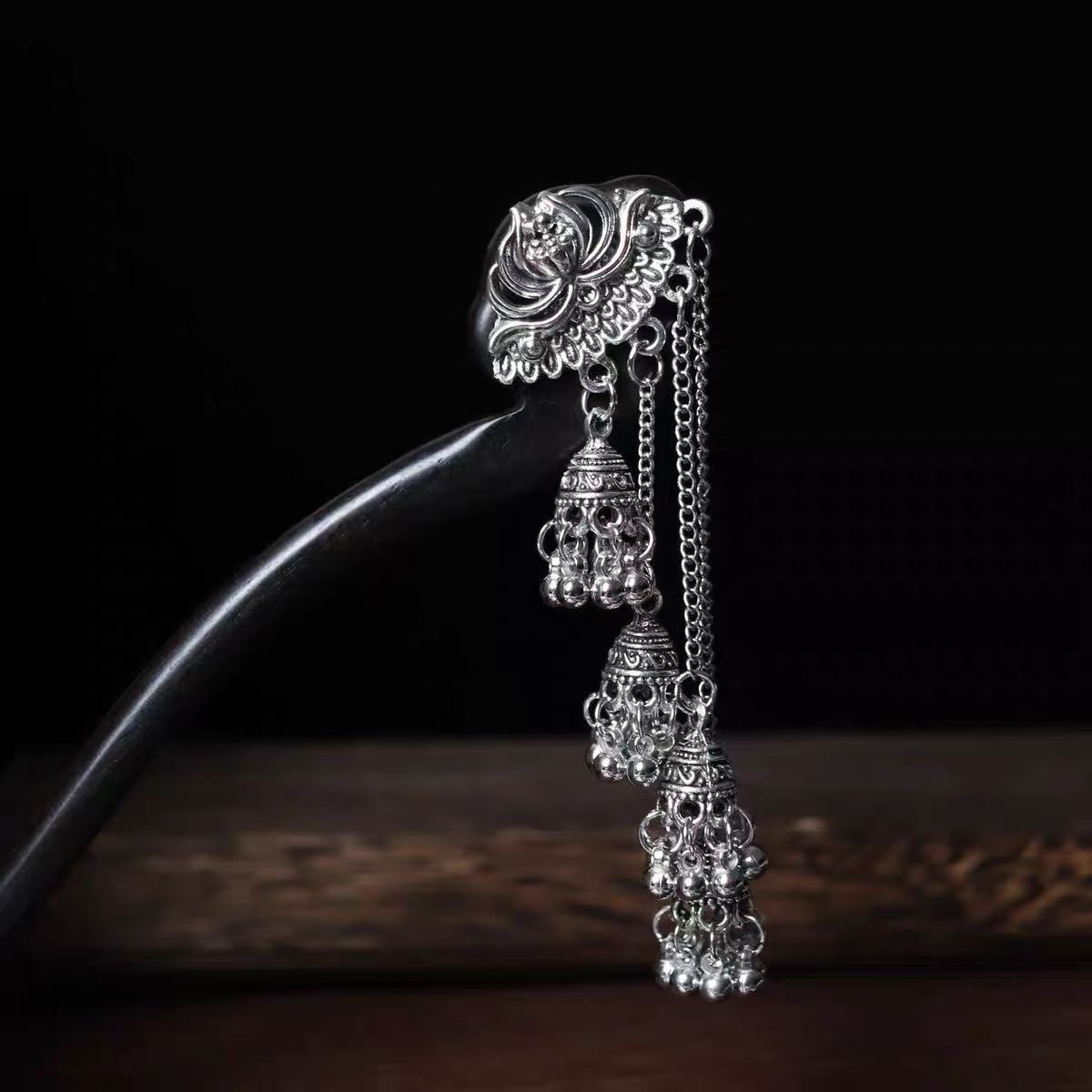新中式国风流苏发饰古风铃铛发簪苗族古银风头饰古装汉服挽发发钗