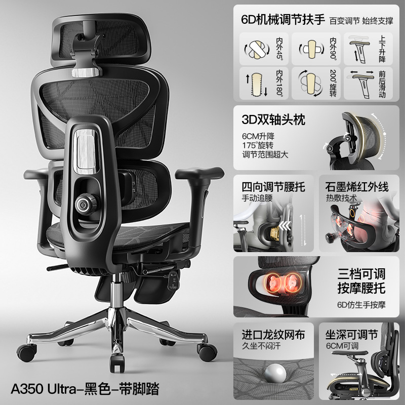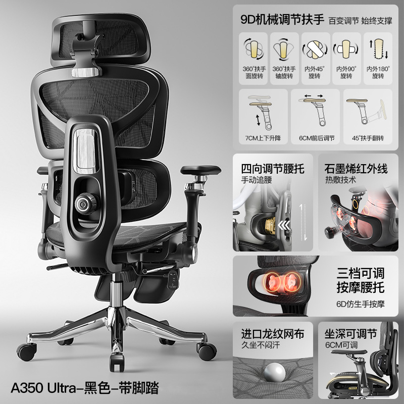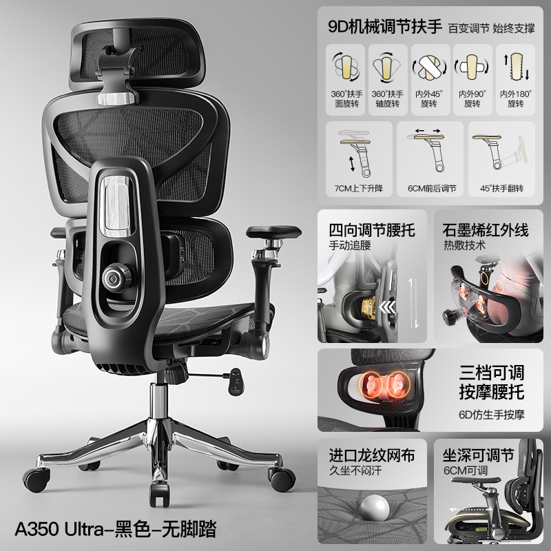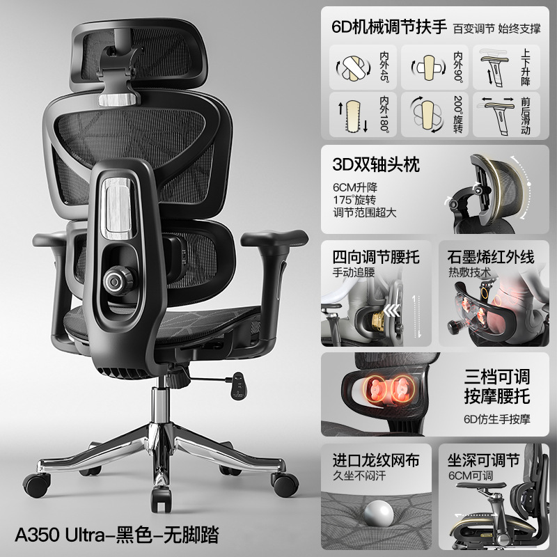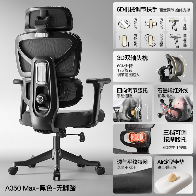 人体工学椅按摩护腰加热电脑椅家用舒适久坐办公椅支撑坐姿电竞椅