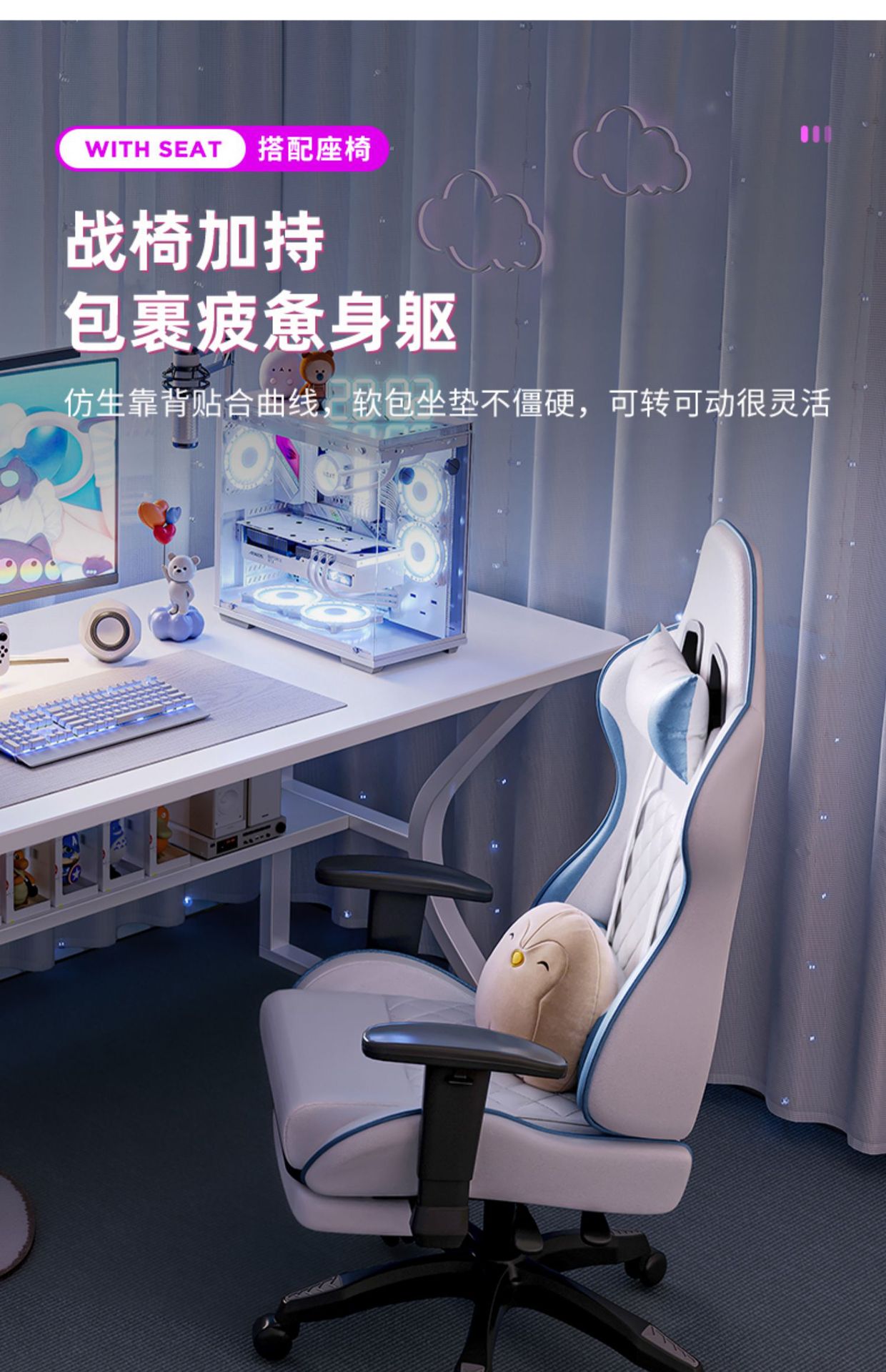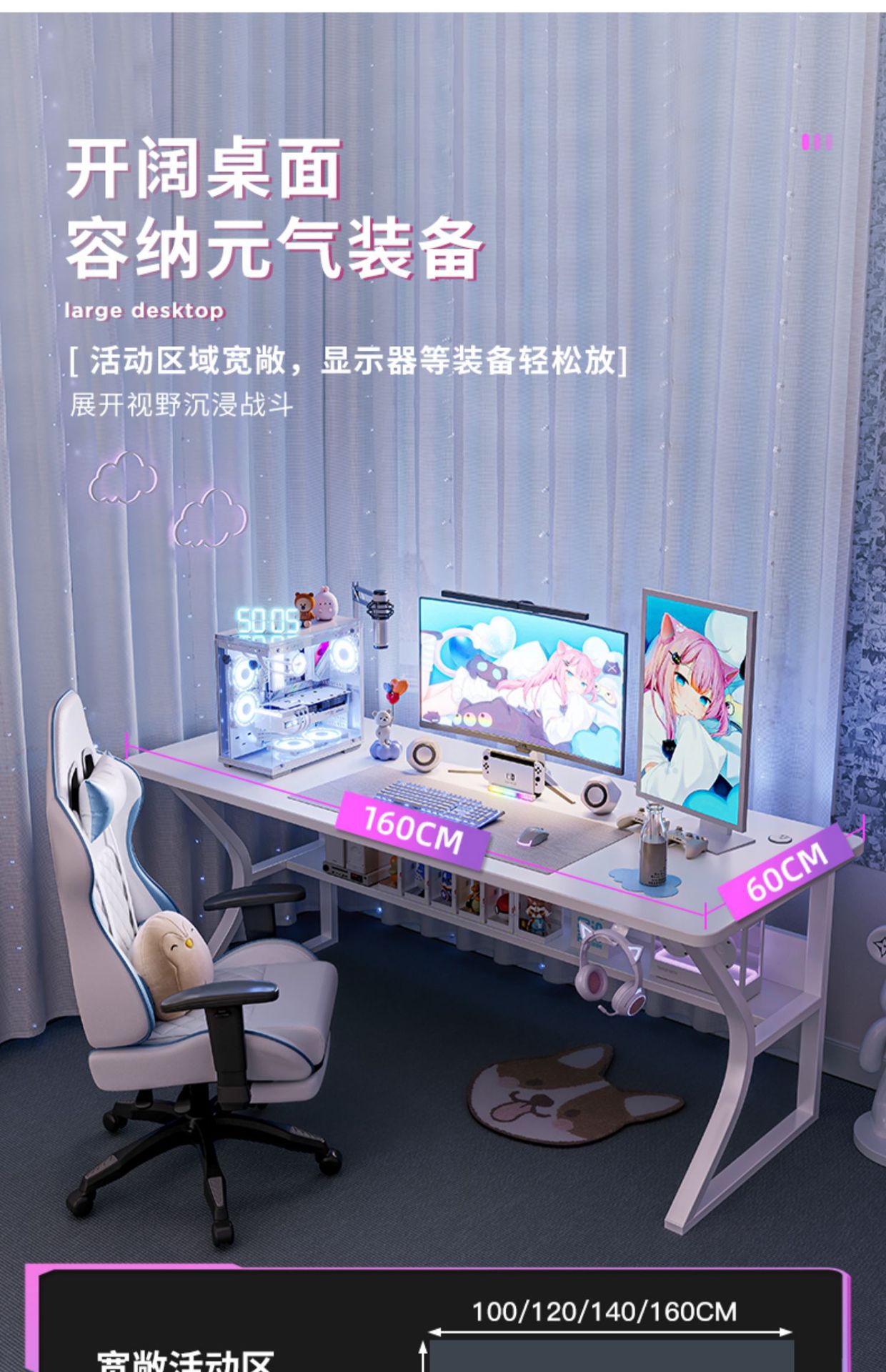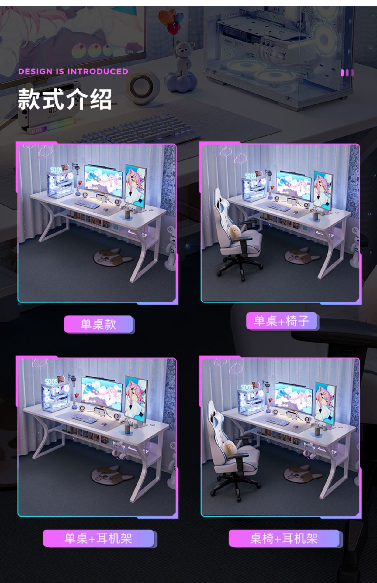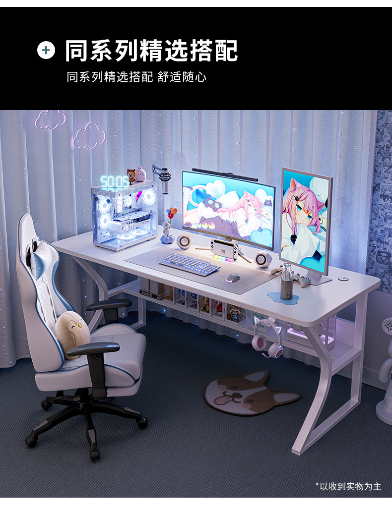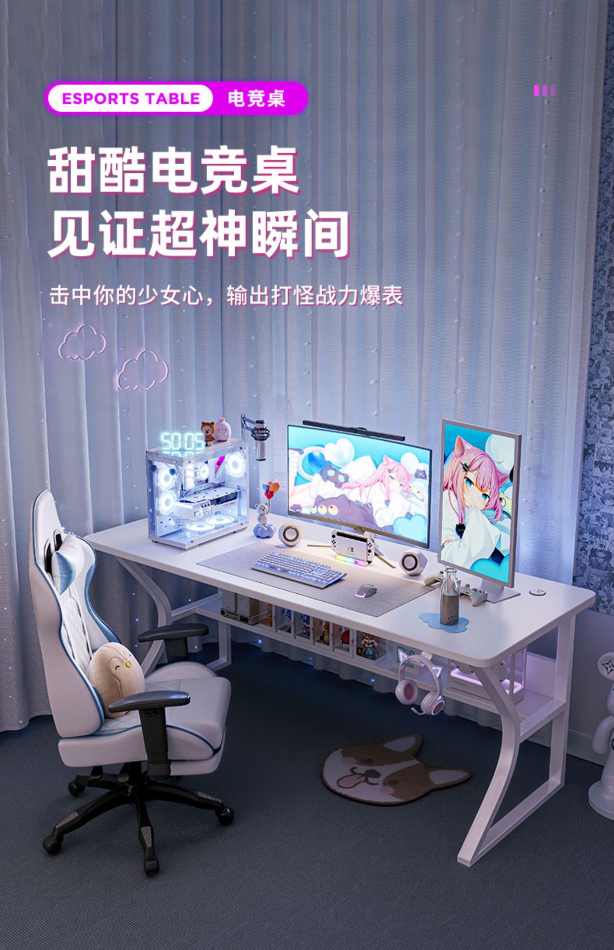 白色电竞桌子电脑桌台式家用办公桌椅套装简易卧室书桌学习写字桌