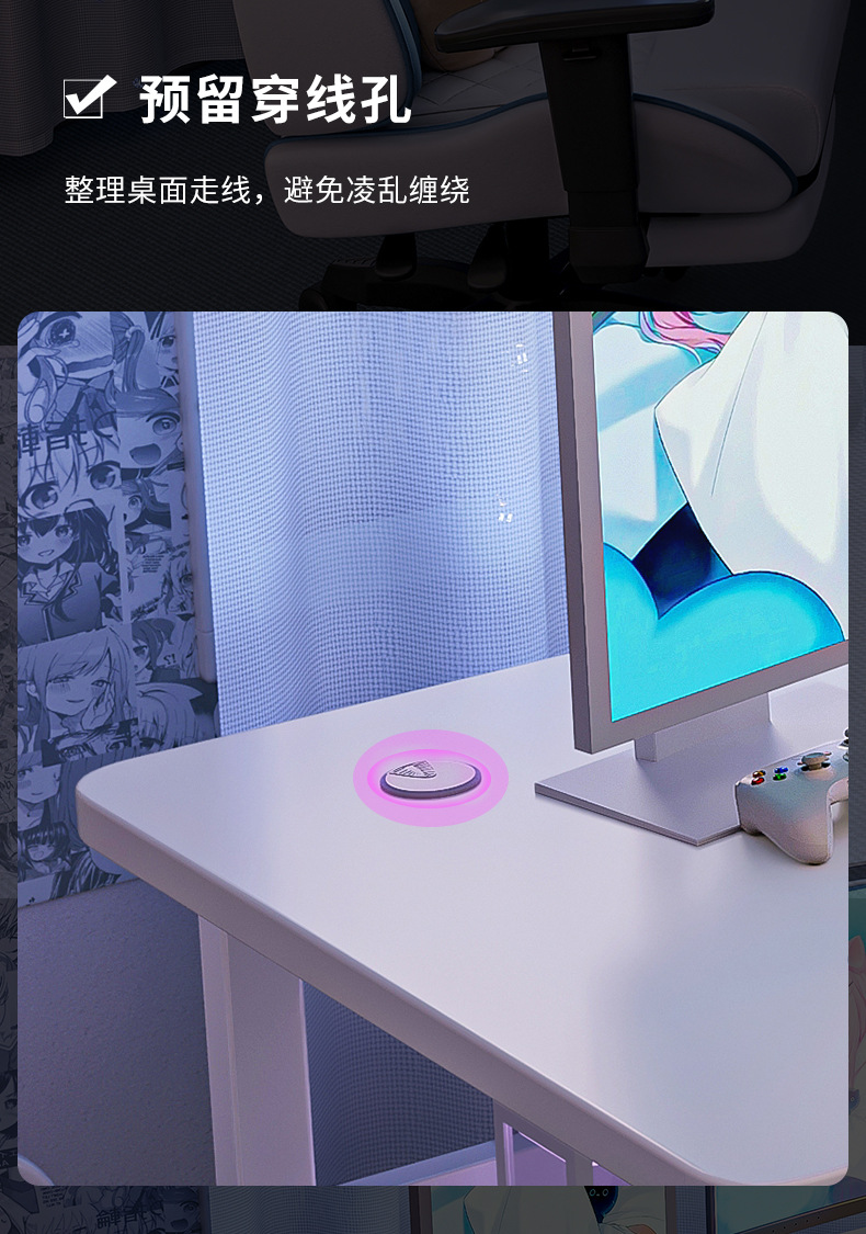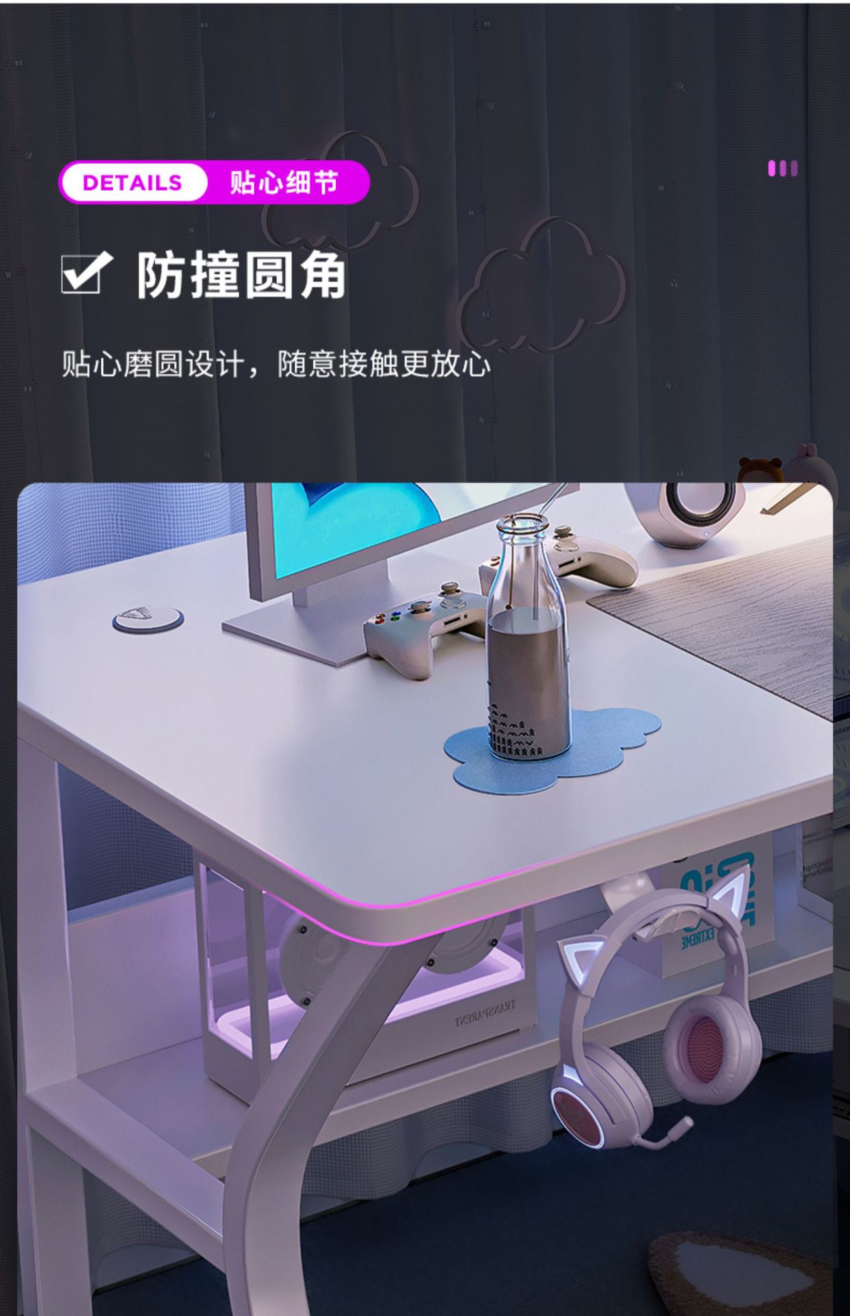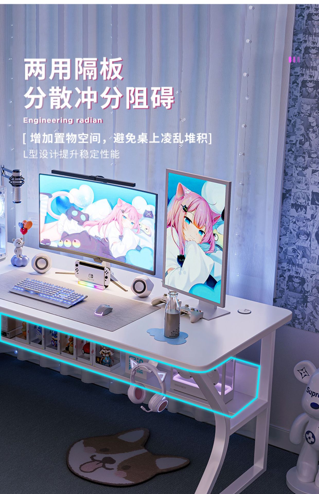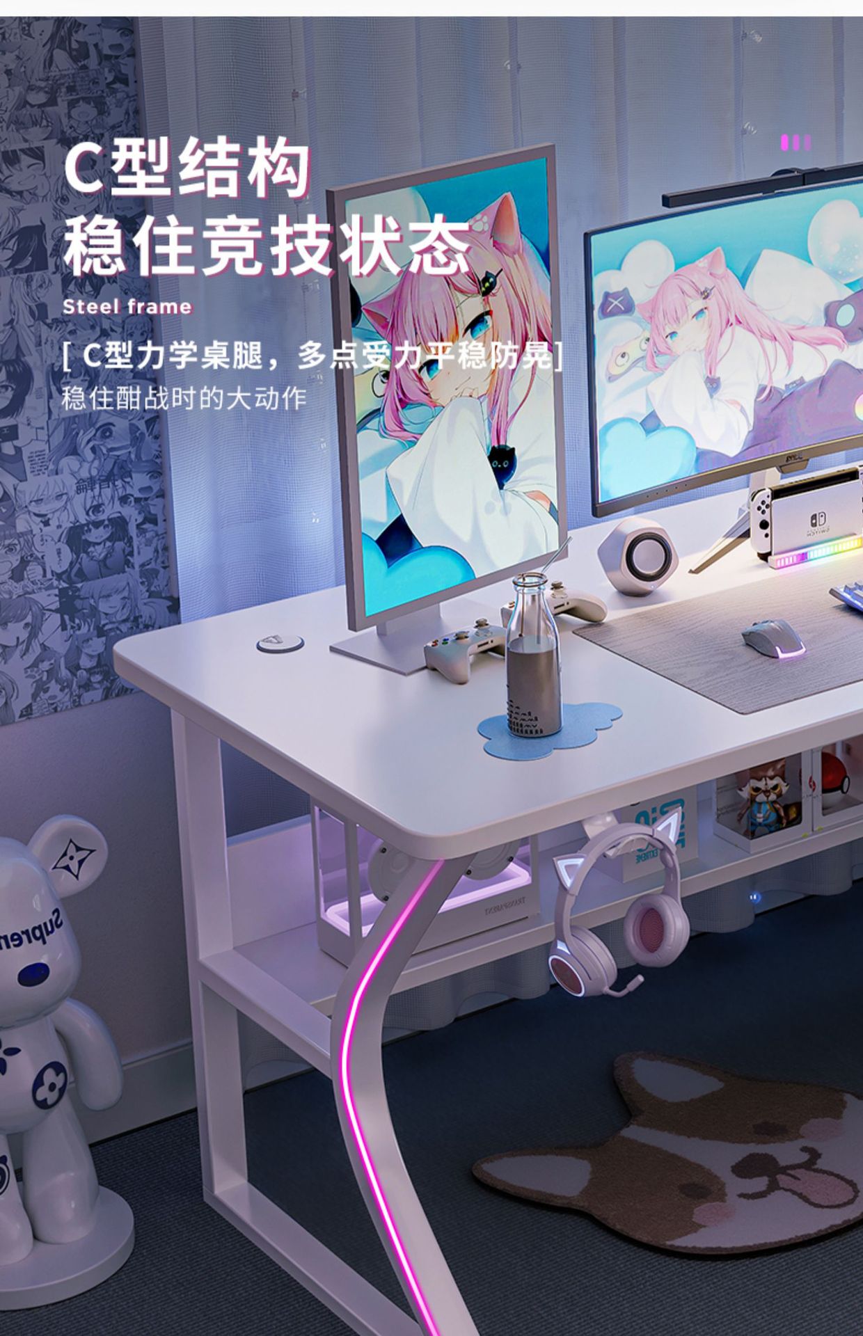 白色电竞桌子电脑桌台式家用办公桌椅套装简易卧室书桌学习写字桌