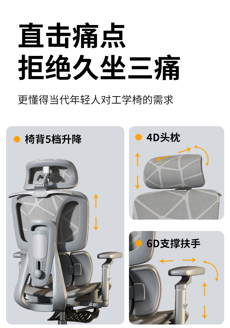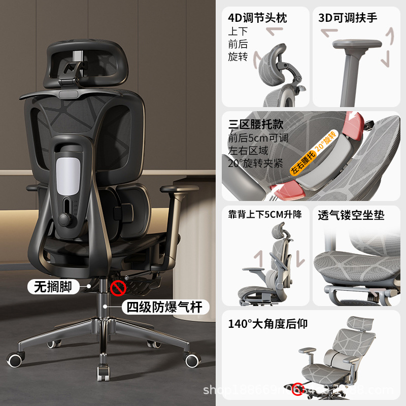 人体工学椅子护腰电脑椅家用电竞椅子舒适久坐老板座椅可躺办公椅