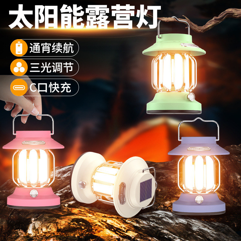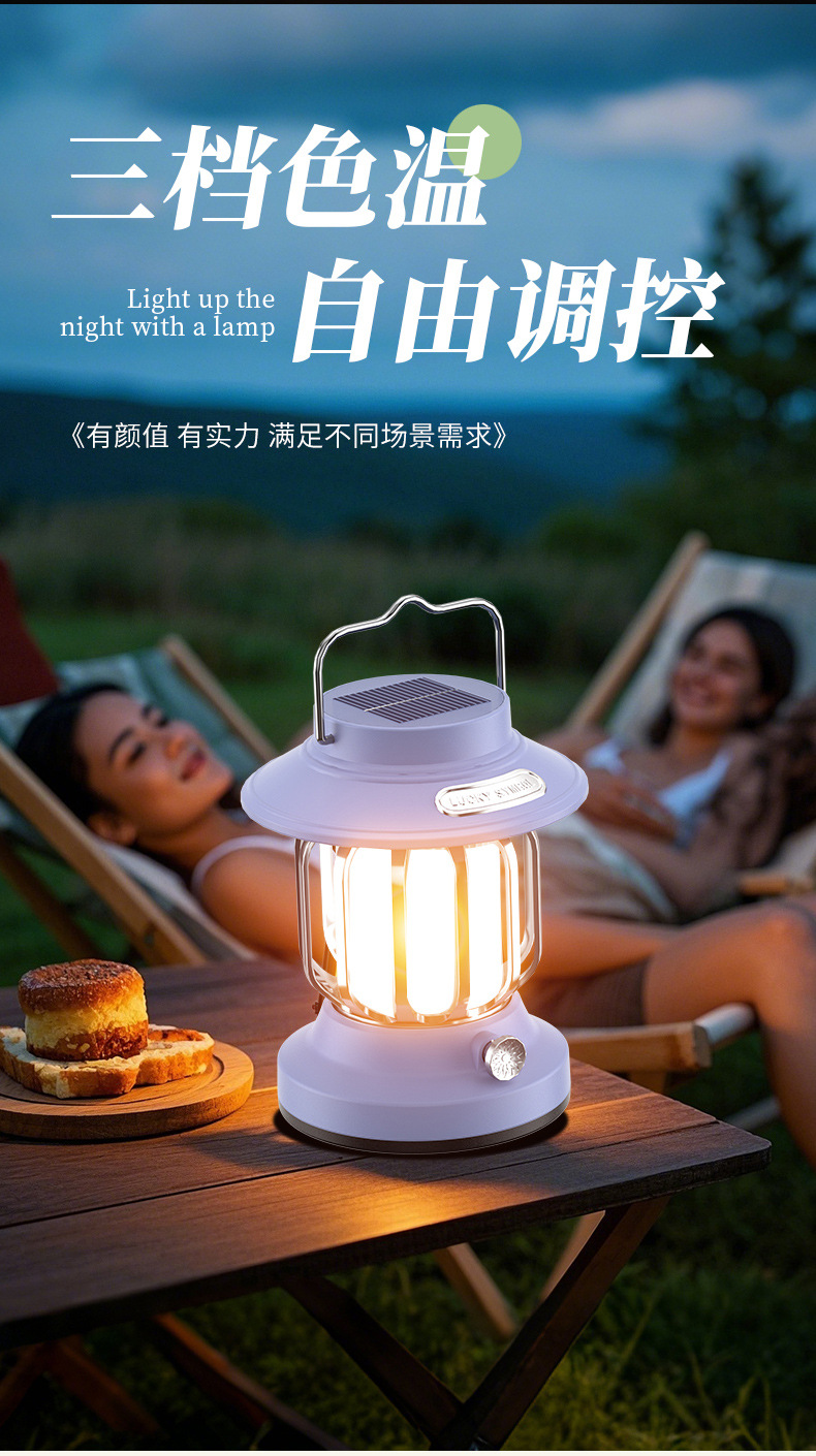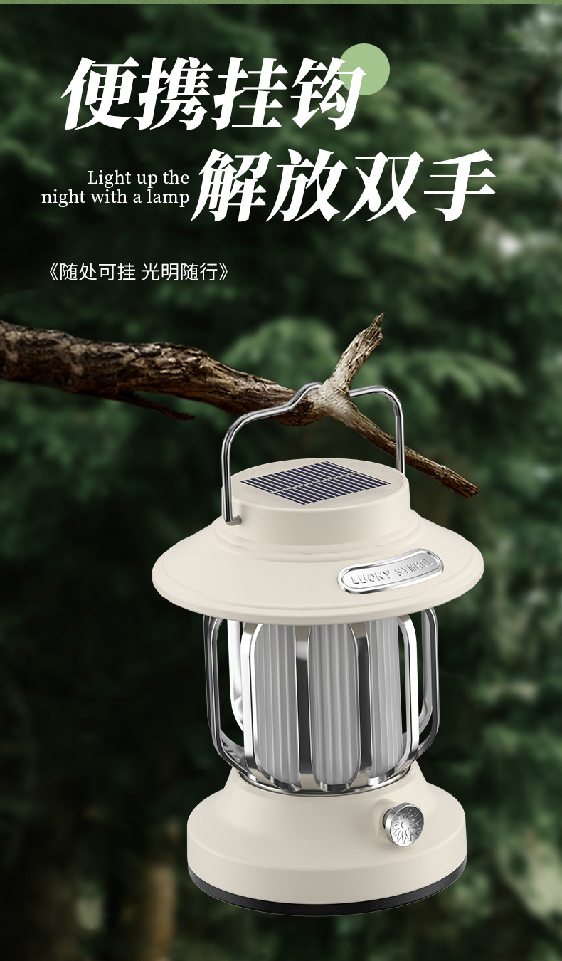 创意复古露营灯户外太阳能营地灯多功能野营灯led手提帐篷照明灯
