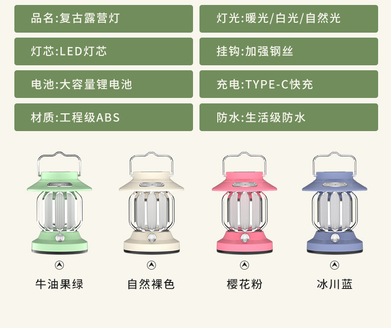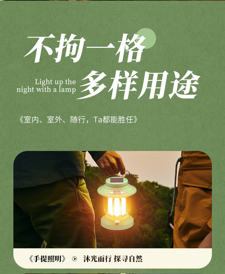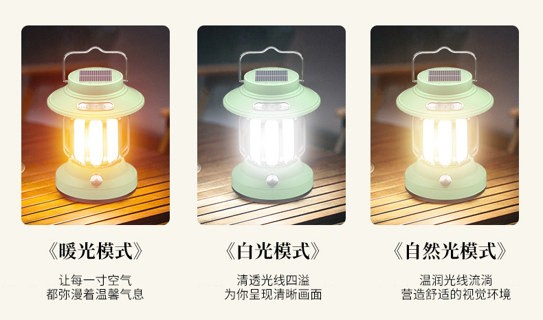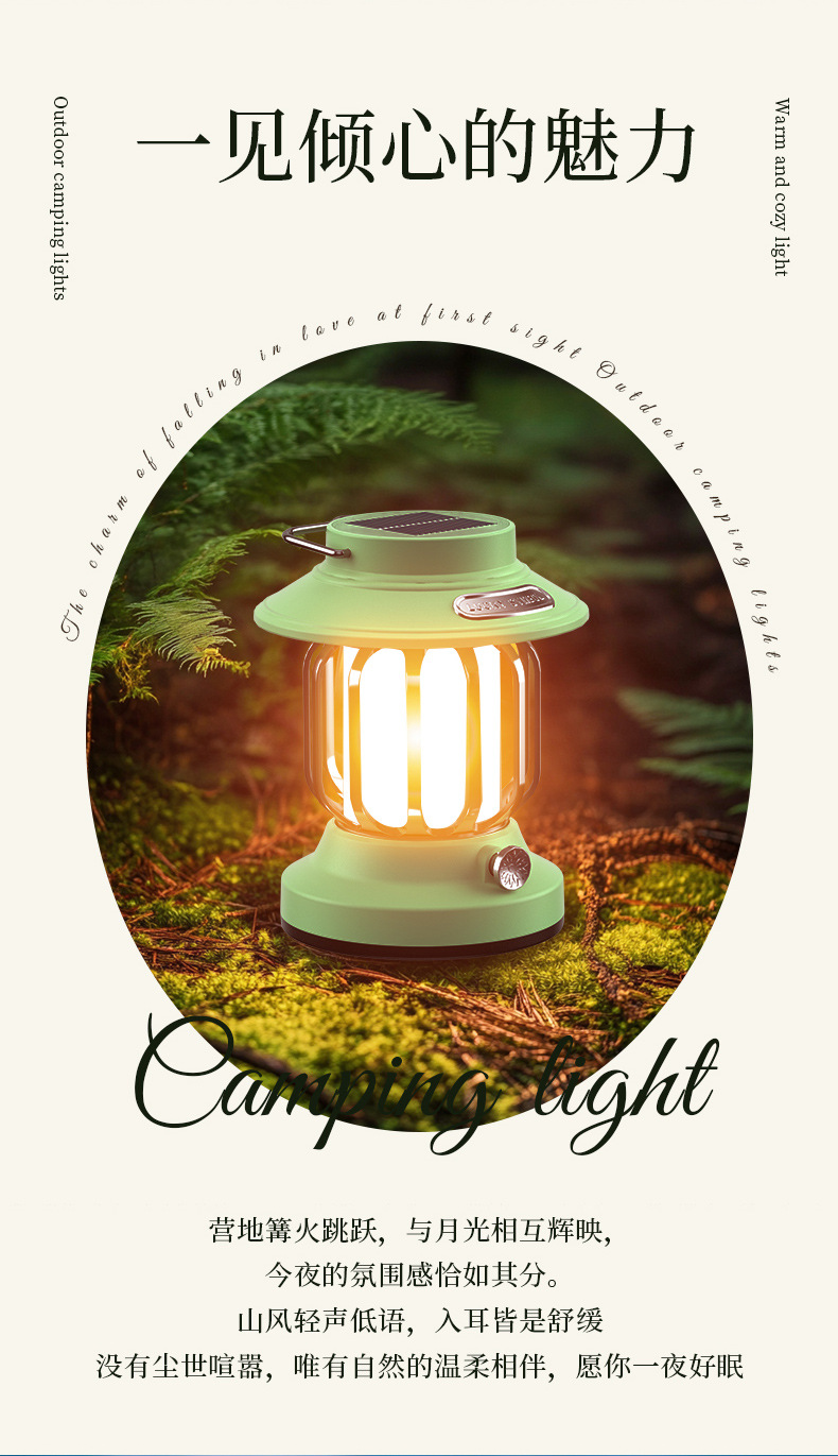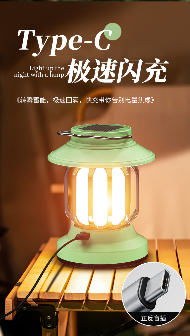 创意复古露营灯户外太阳能营地灯多功能野营灯led手提帐篷照明灯