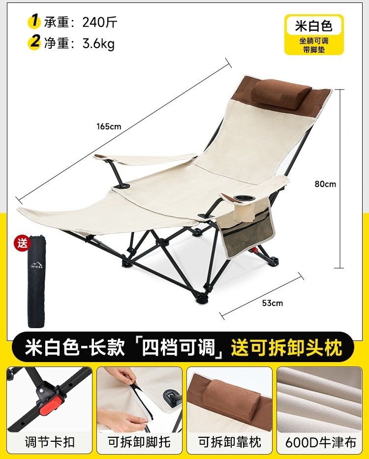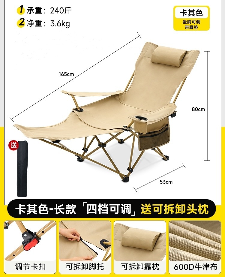 户外扶手躺椅午休折叠便携露营椅办公室午睡椅折叠椅沙滩椅月亮椅