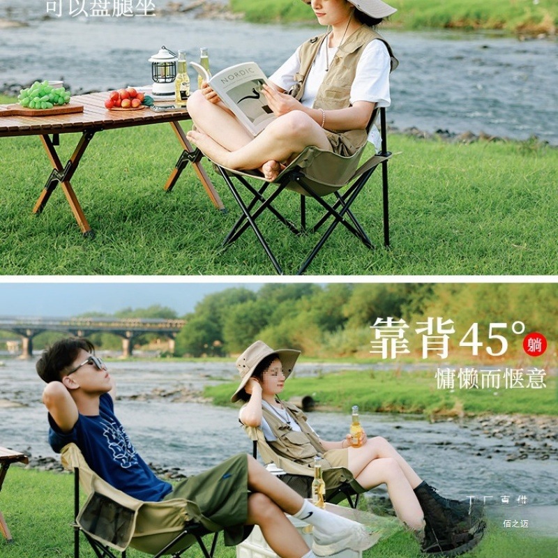 户外折叠椅露营月亮椅便携钓鱼凳子休闲靠背椅子美术生写生小马扎