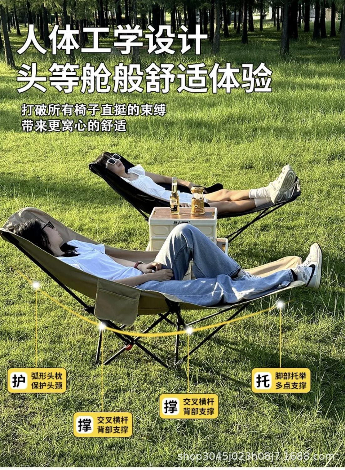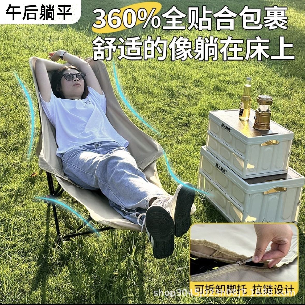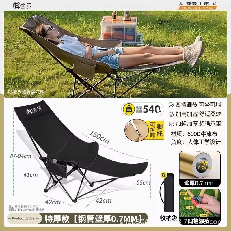 月亮椅三档调节简易折叠床椅子便携月亮椅办公室午休躺椅带腿托