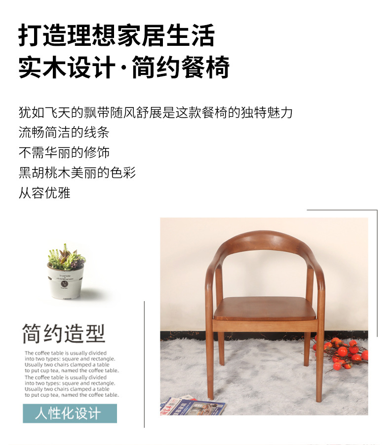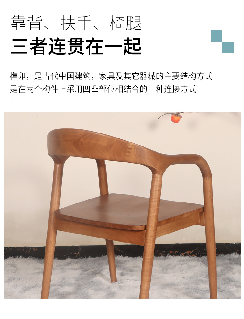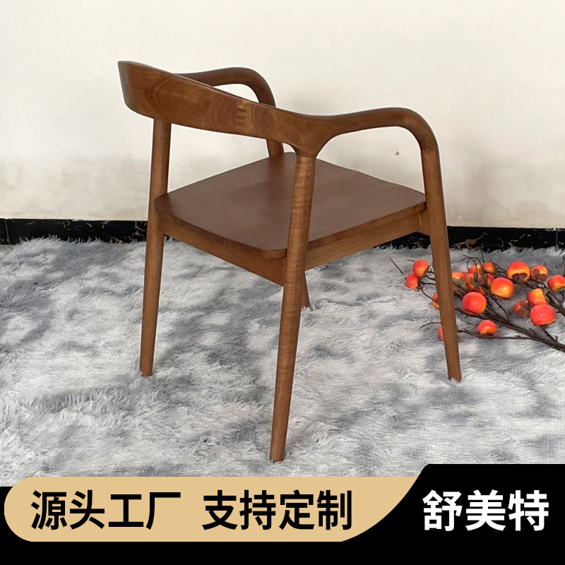 中式轻奢扶手椅扶手靠背胡桃色椅子茶室实木椅书房舒美特椅子