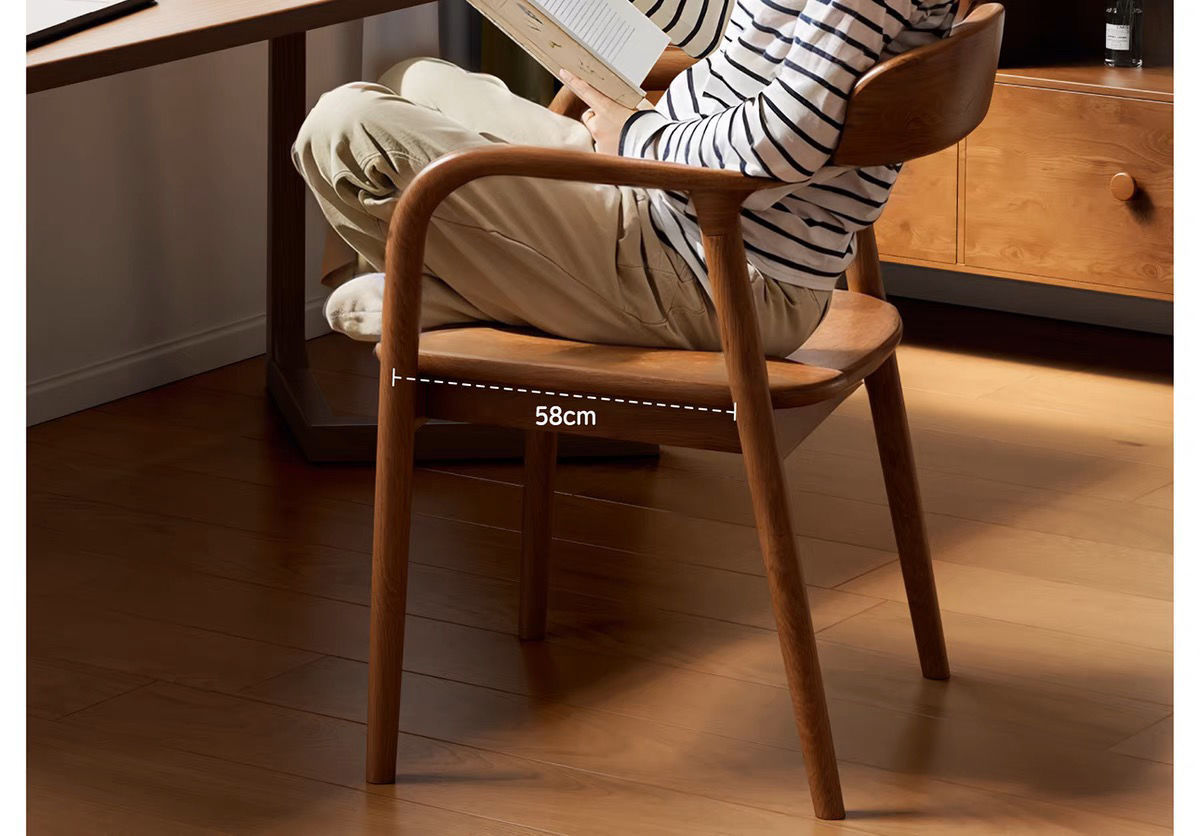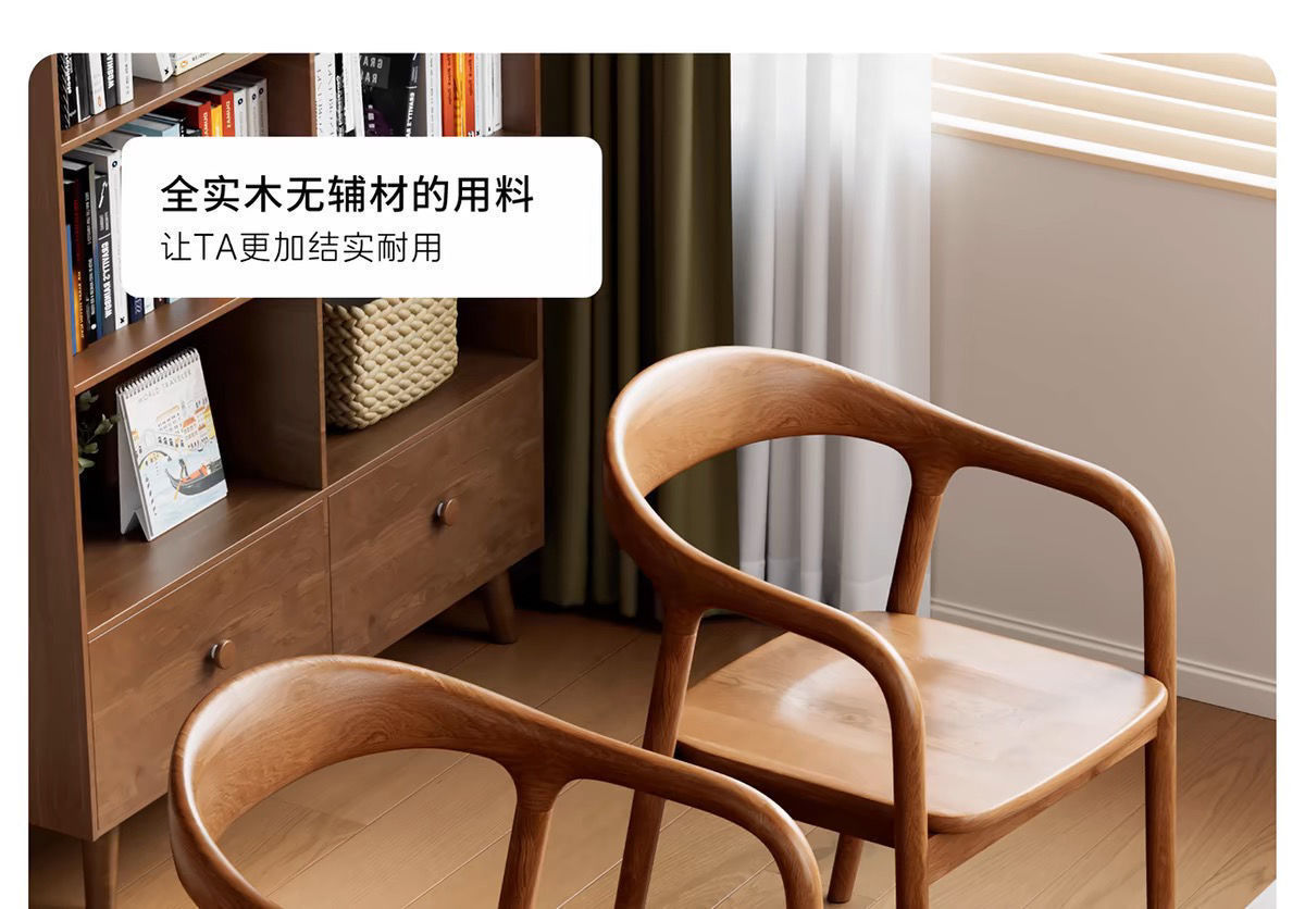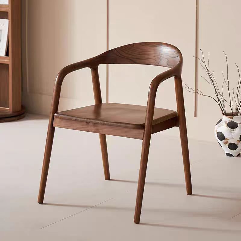 北欧实木餐椅家用靠背椅胡桃舒美特椅简约扶手椅子复古洽谈书桌椅