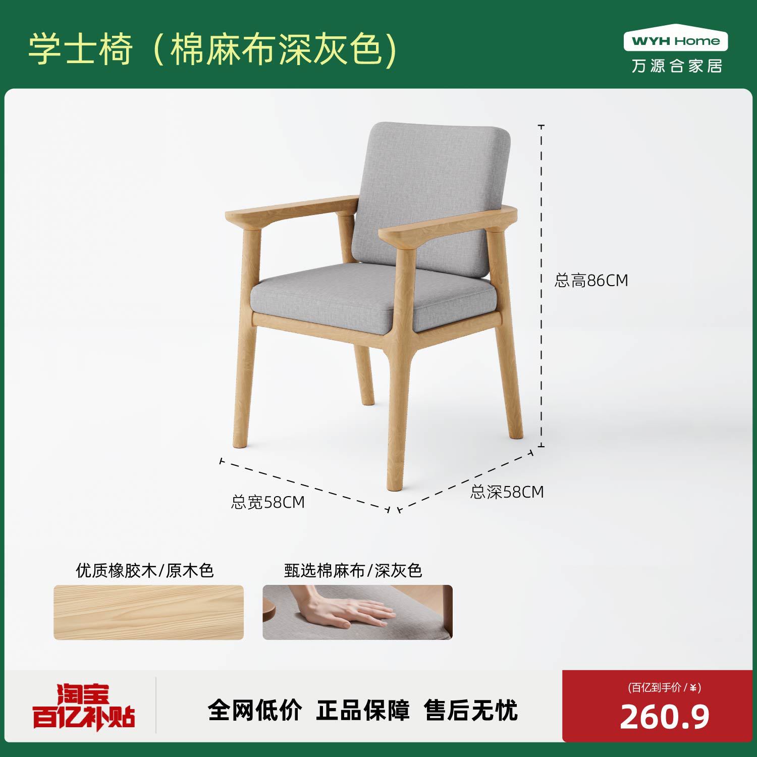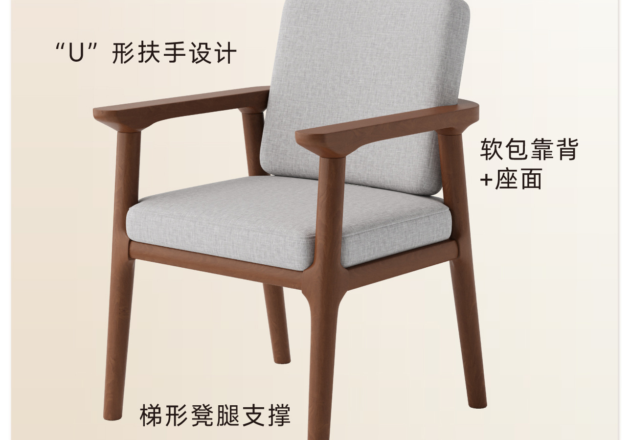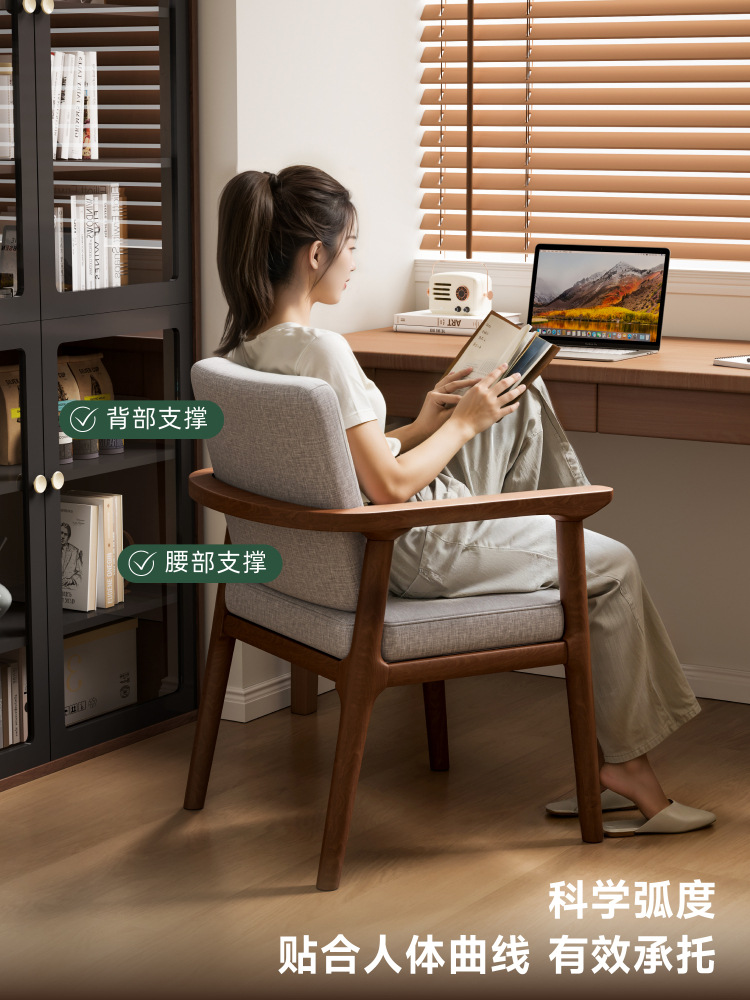 实木椅子家用餐椅扶手靠背椅座椅书房书桌椅胡桃木中式茶椅学士椅