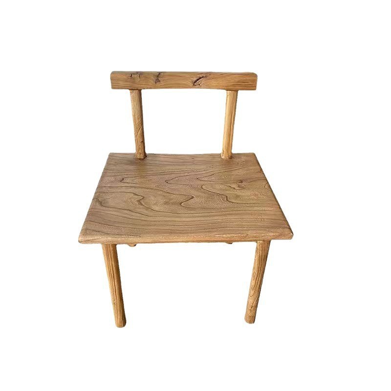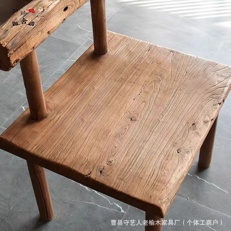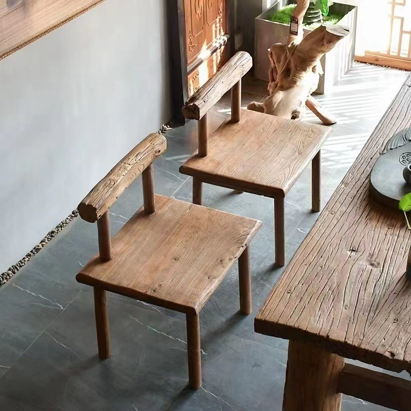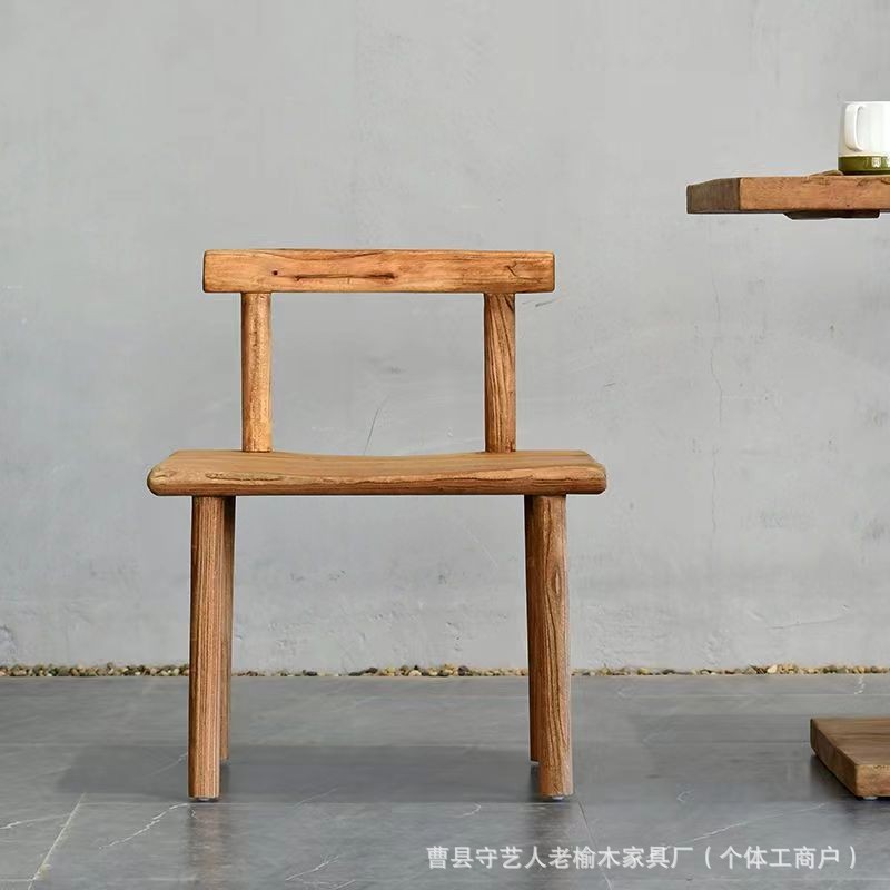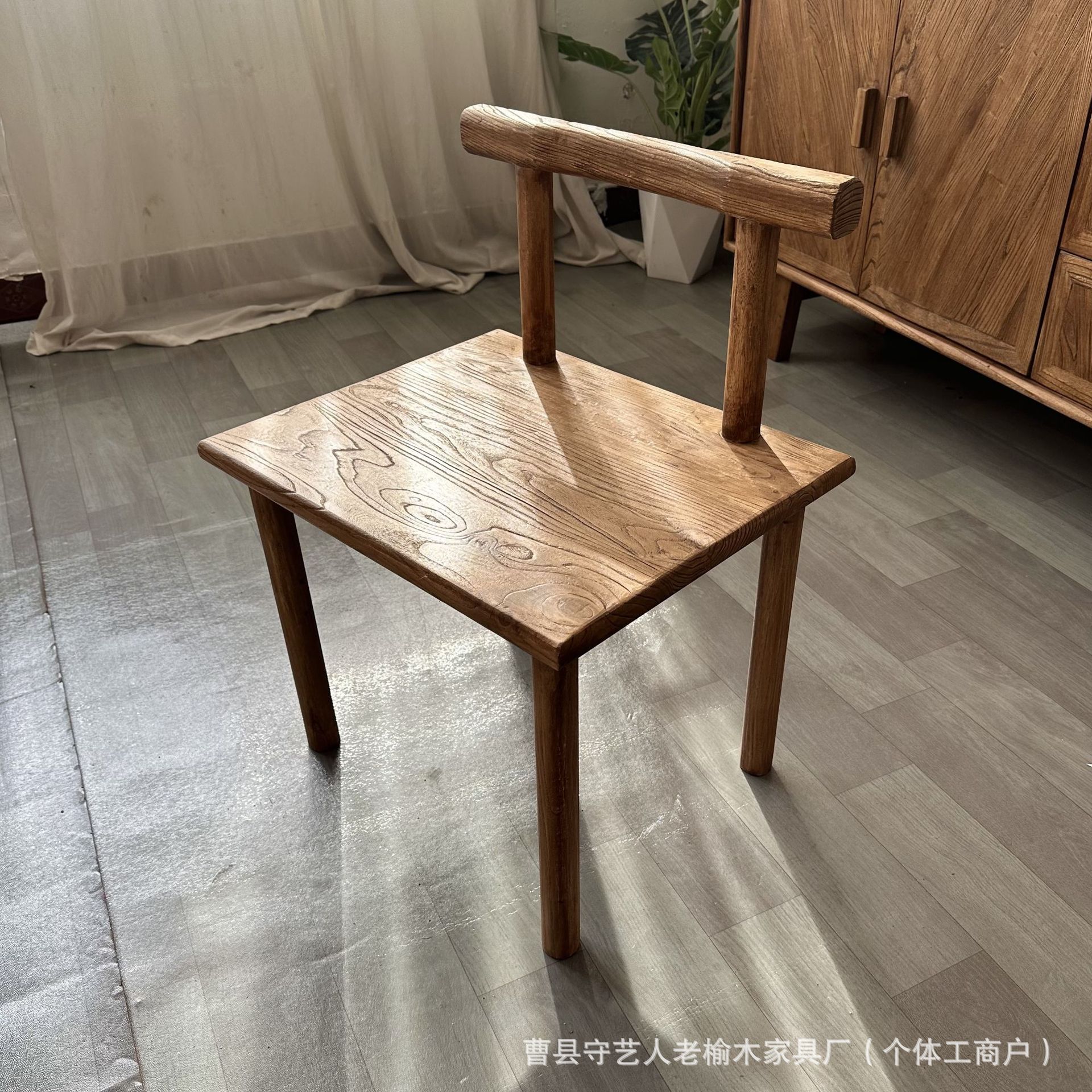 老榆木椅子靠背椅复古侘寂风实木餐椅吧台椅中式家用阳台休闲椅