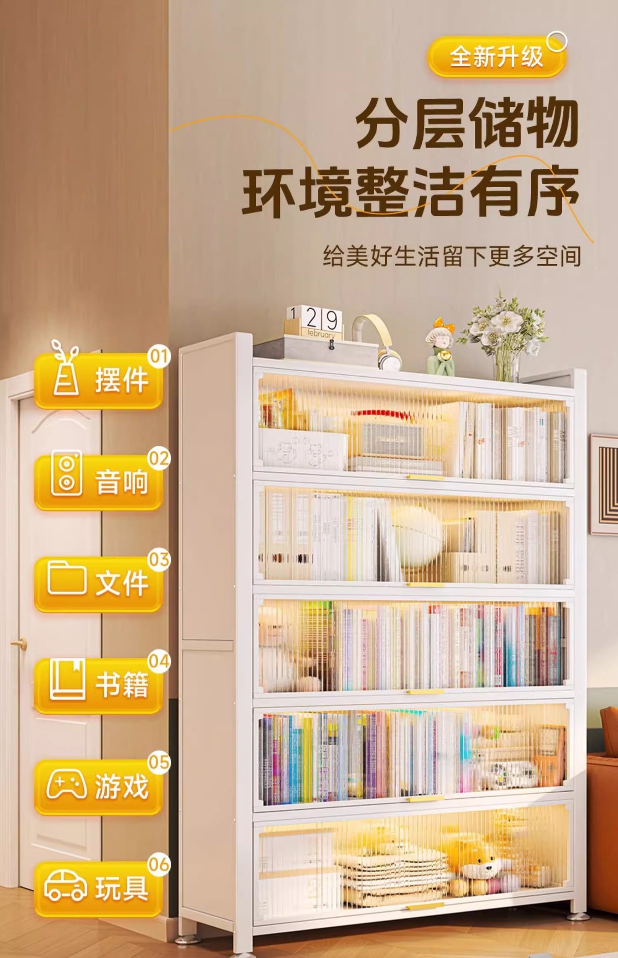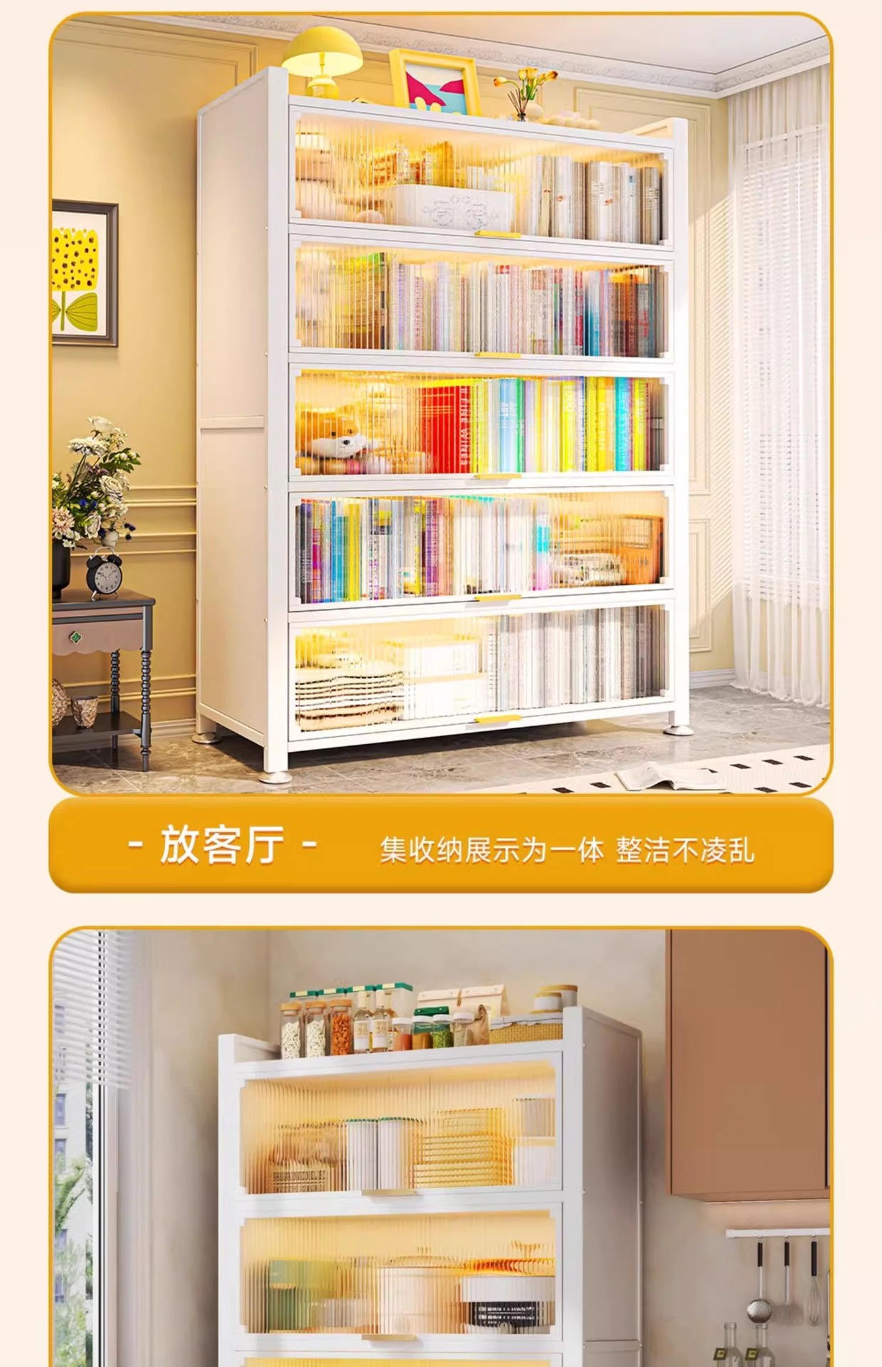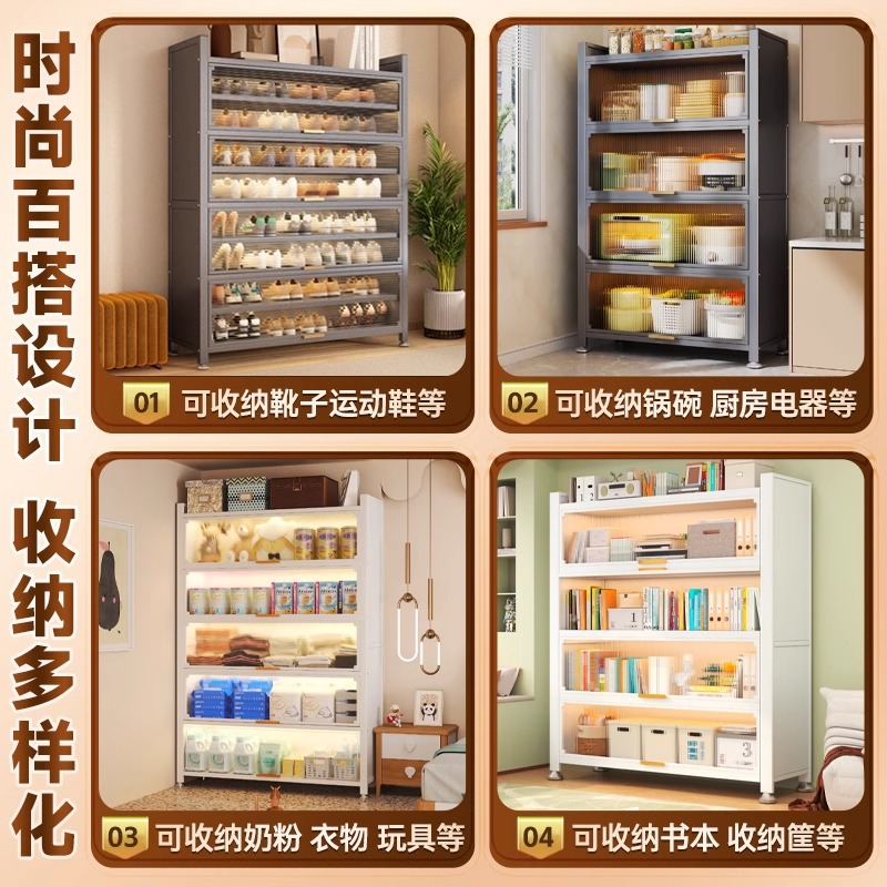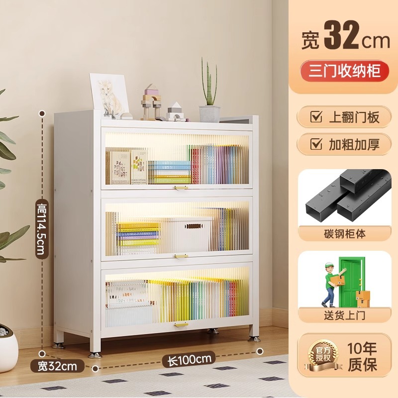 钢制书柜置物柜带门防尘儿童书架落地家用客厅多层展示储物收纳柜