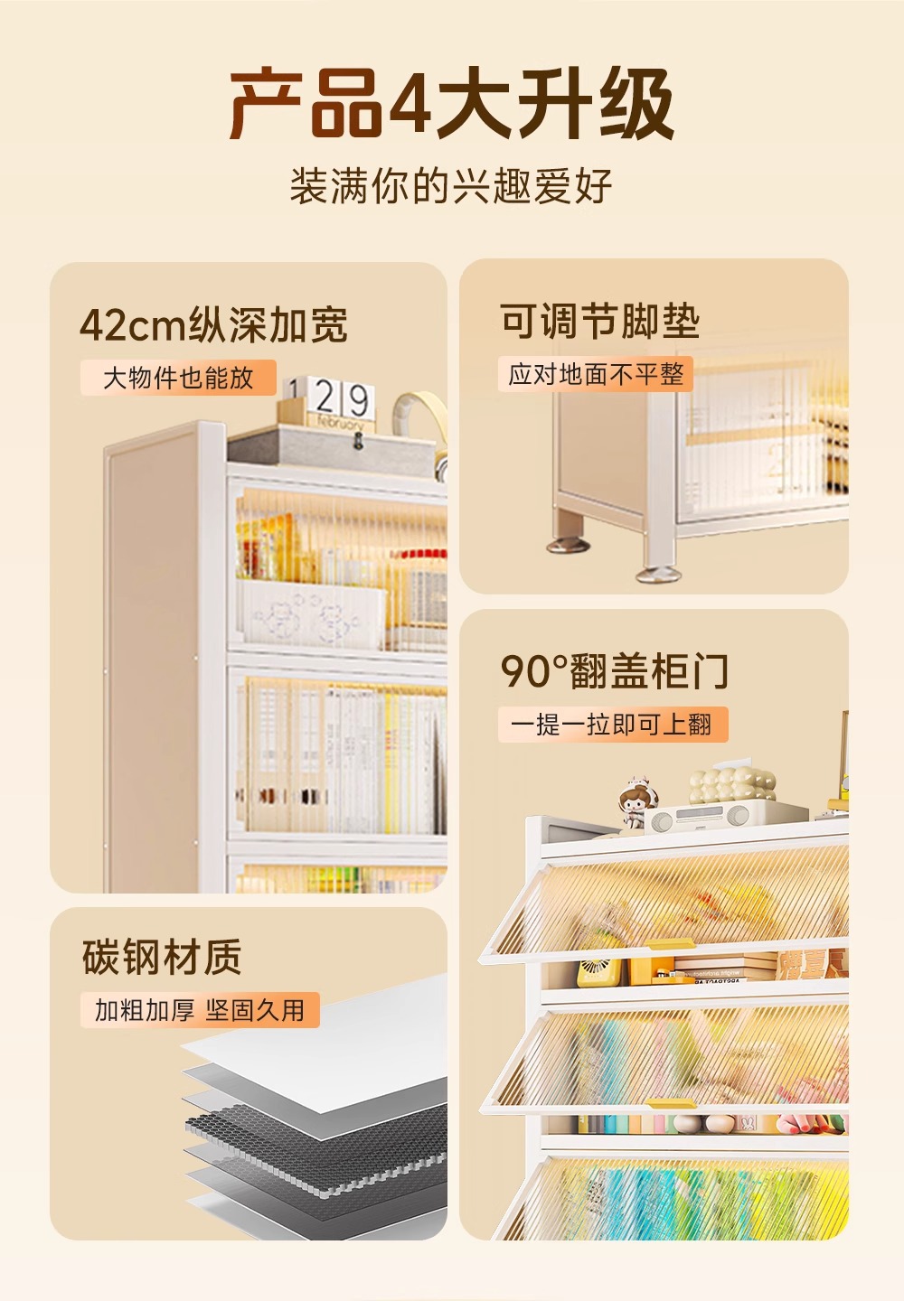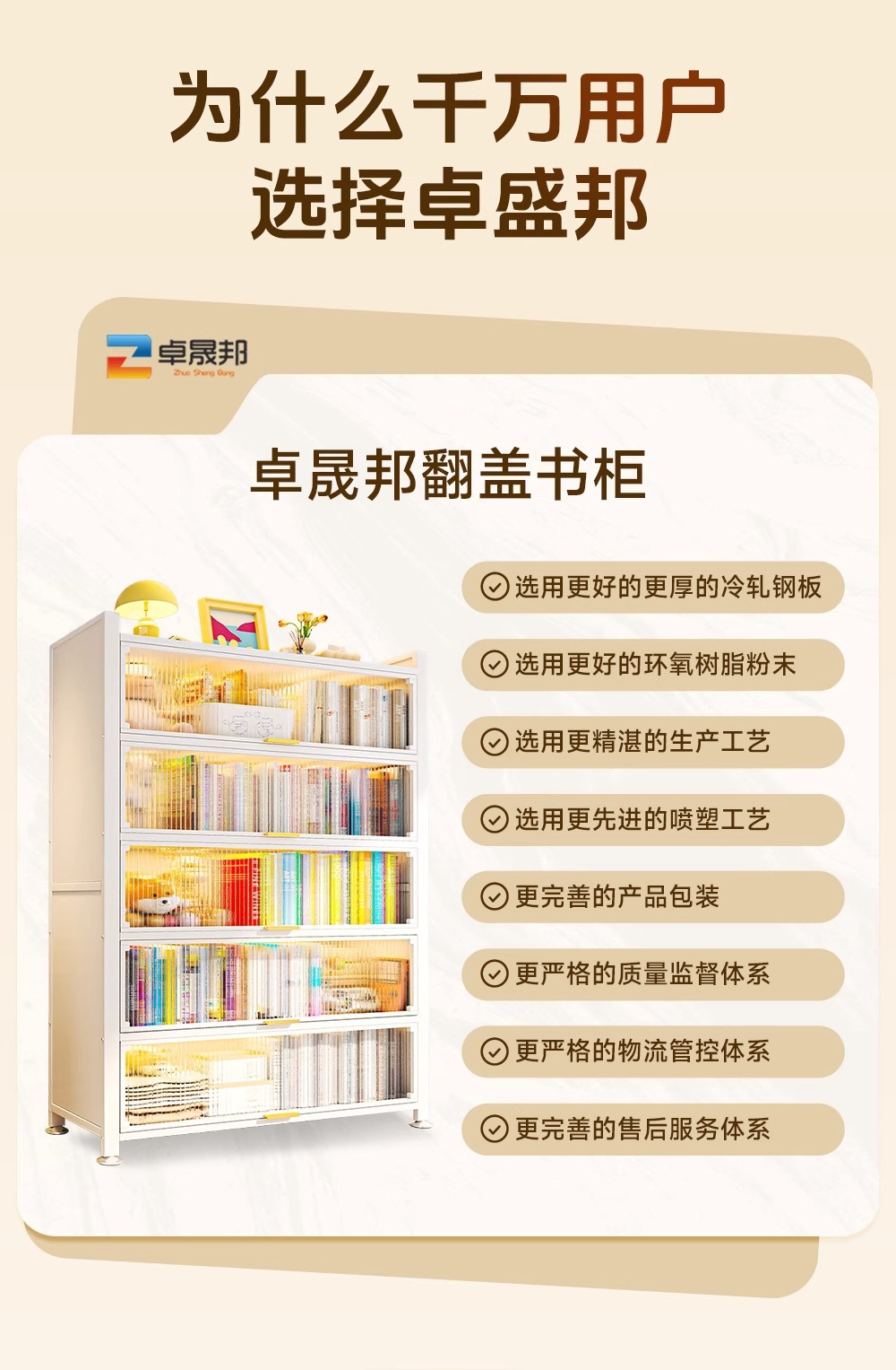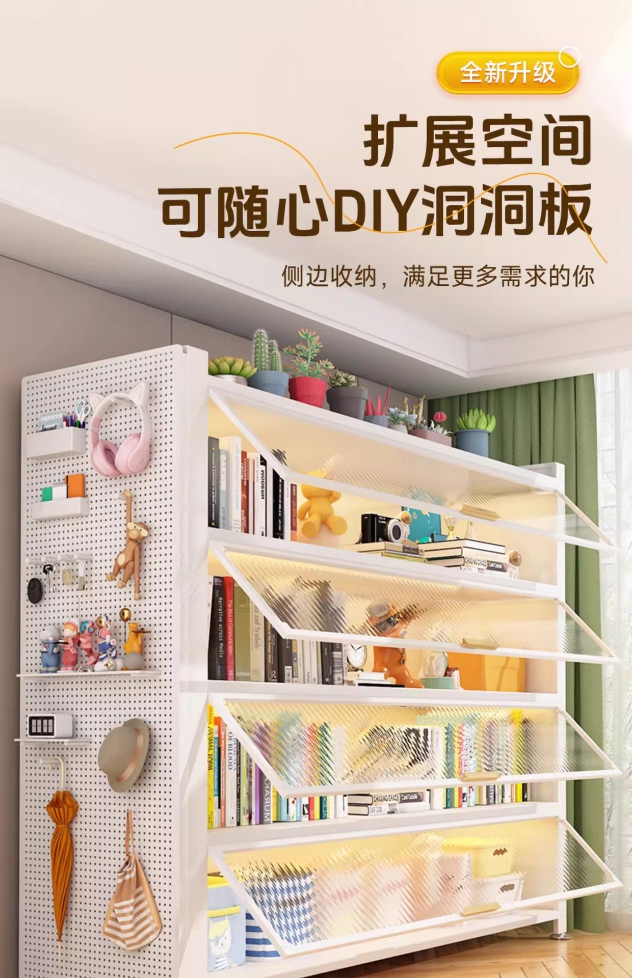钢制书柜置物柜带门防尘儿童书架落地家用客厅多层展示储物收纳柜