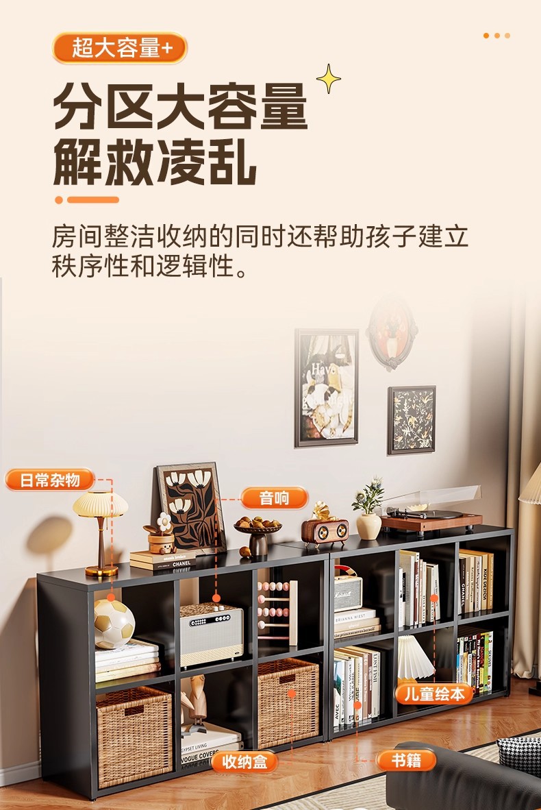 格子柜自由组合钢制书架落地客厅儿童书柜储物柜矮柜子展示柜靠墙