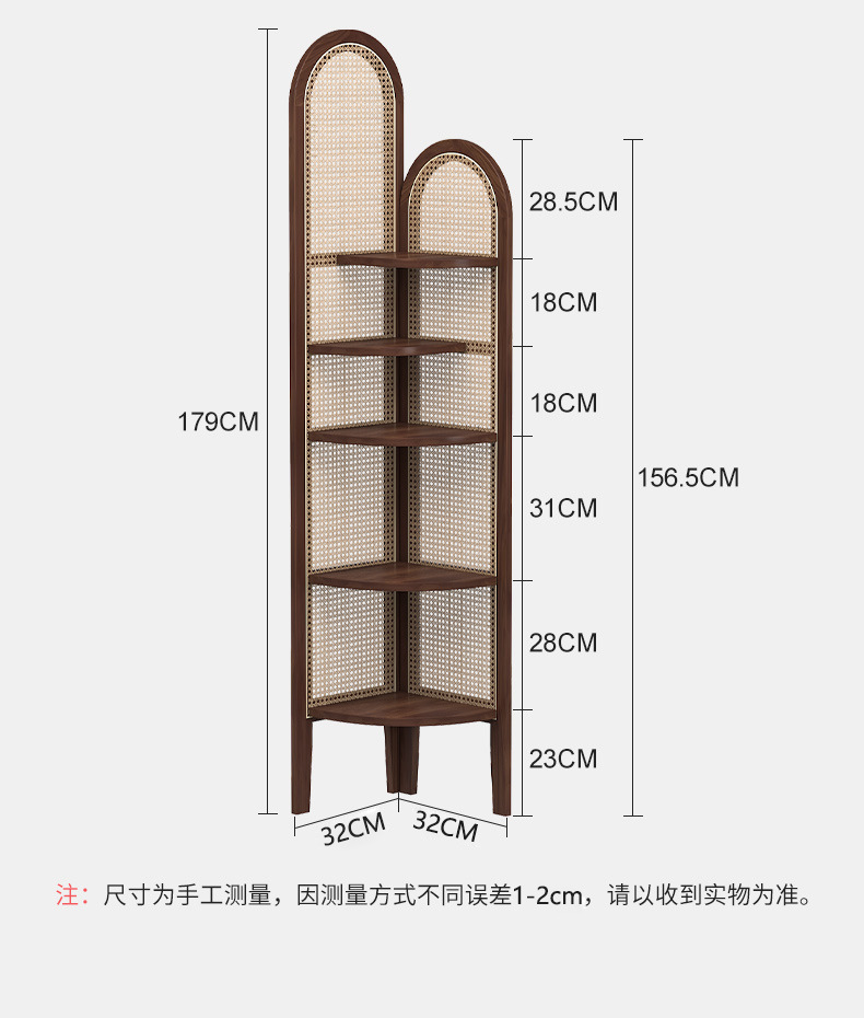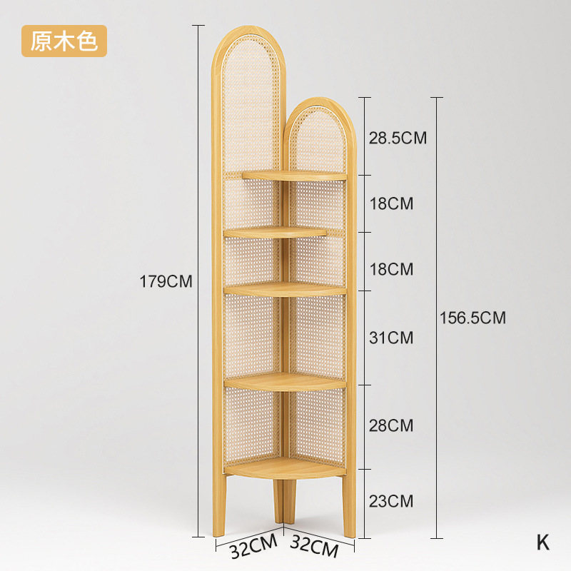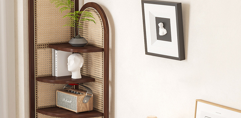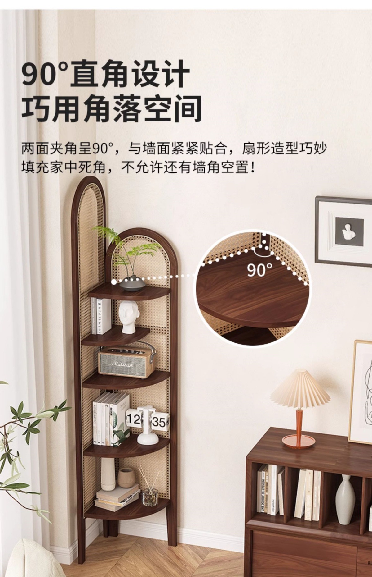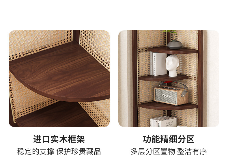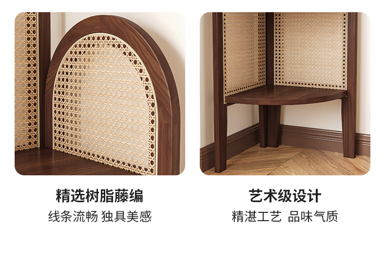 中式复古实木藤编转角柜置物架客厅沙发墙边书柜三角落收纳柜屏风