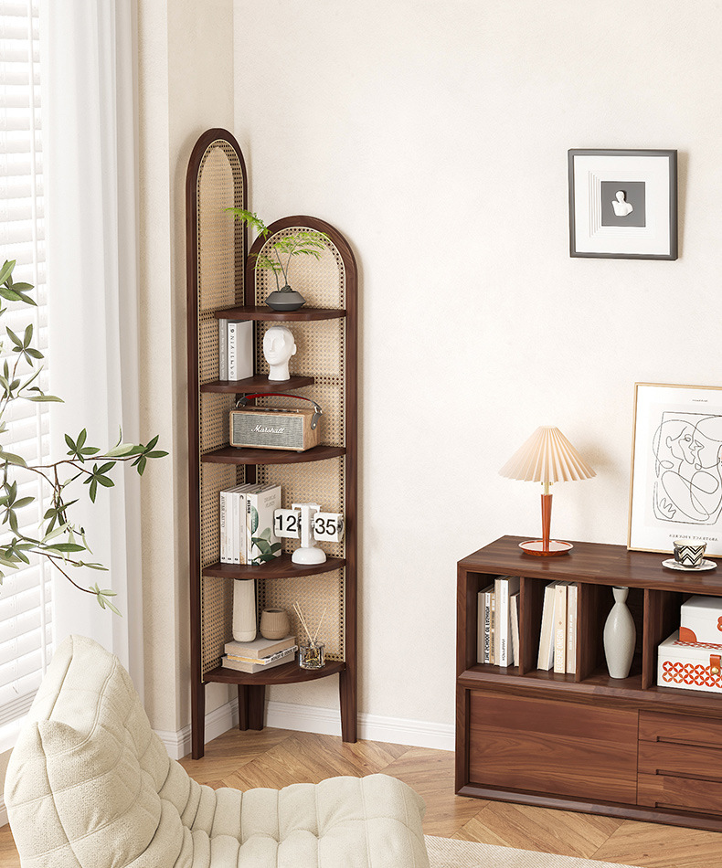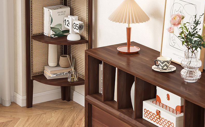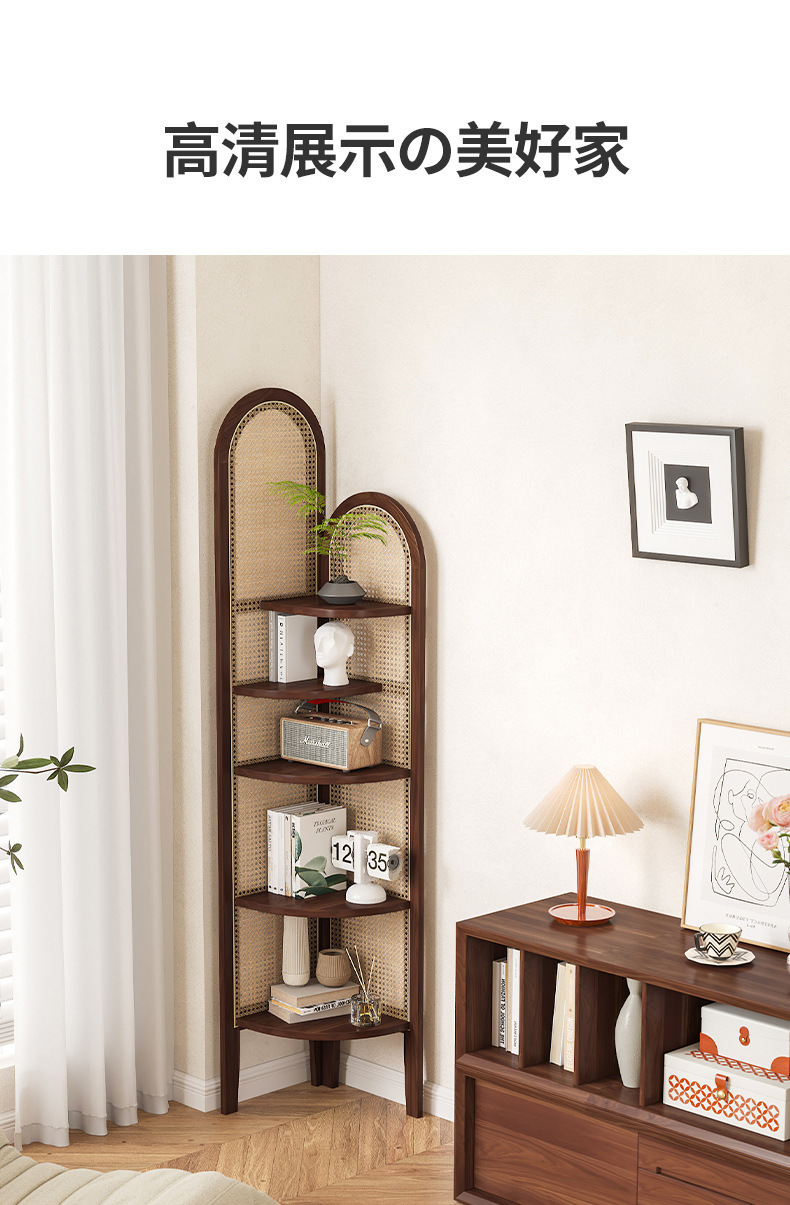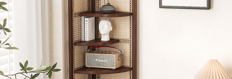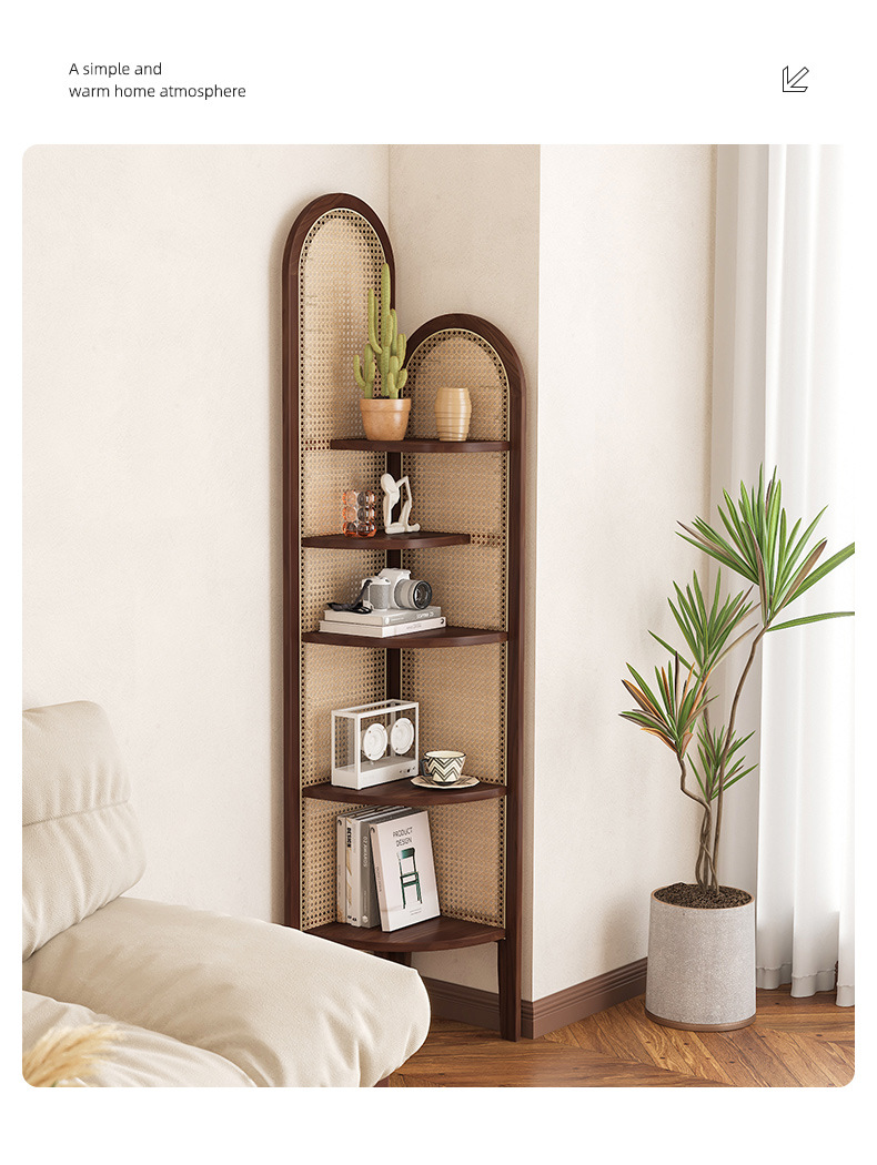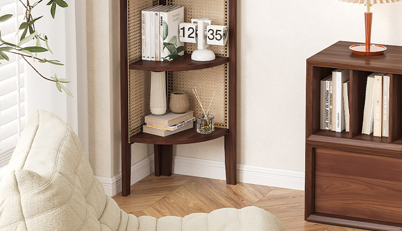 中式复古实木藤编转角柜置物架客厅沙发墙边书柜三角落收纳柜屏风