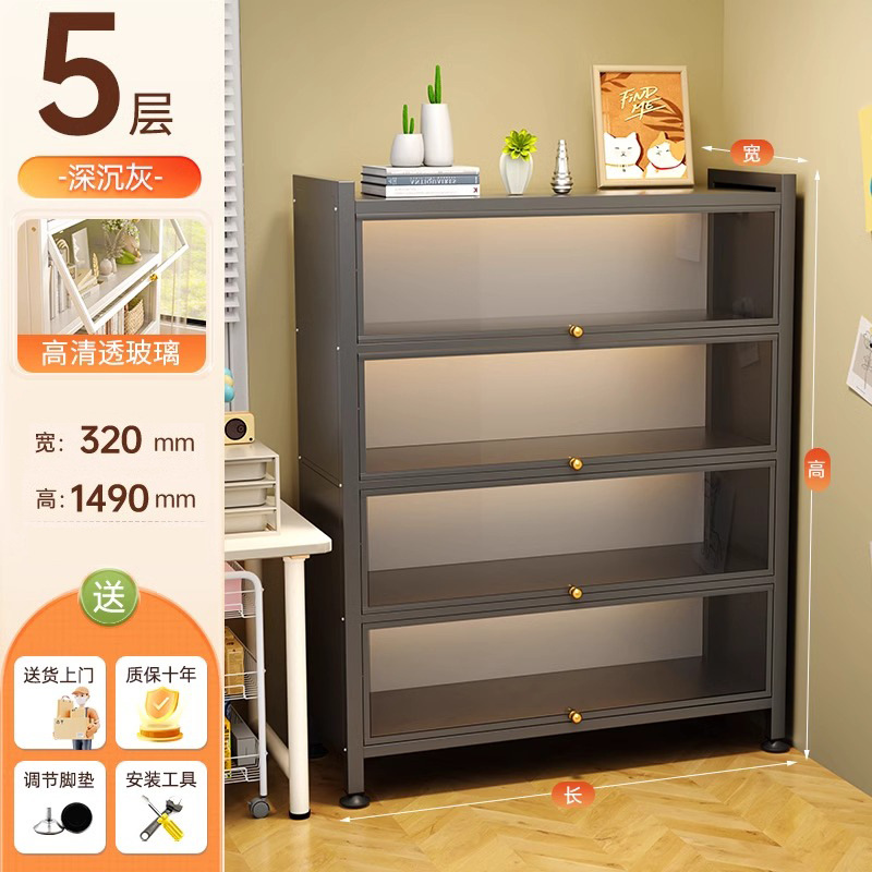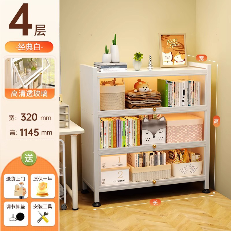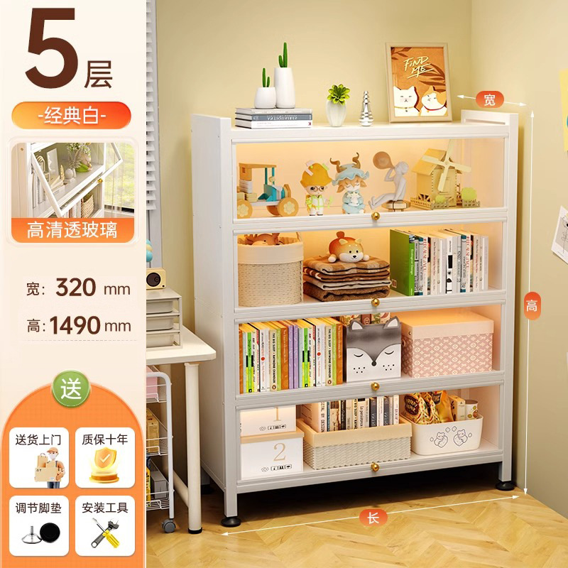 钢制书架带门玻璃书柜落地防尘铁皮手办展示柜家用储物柜收纳柜子