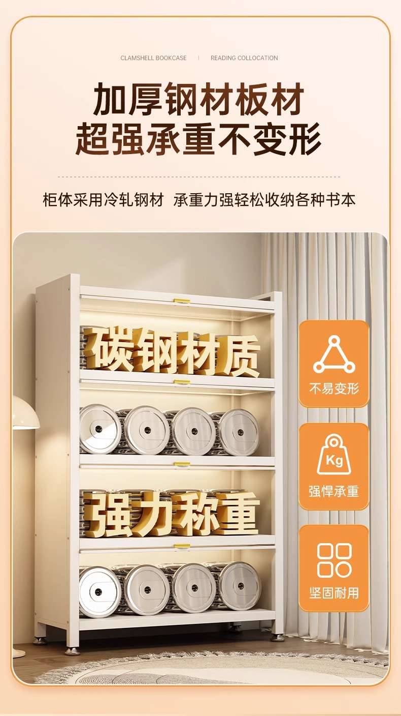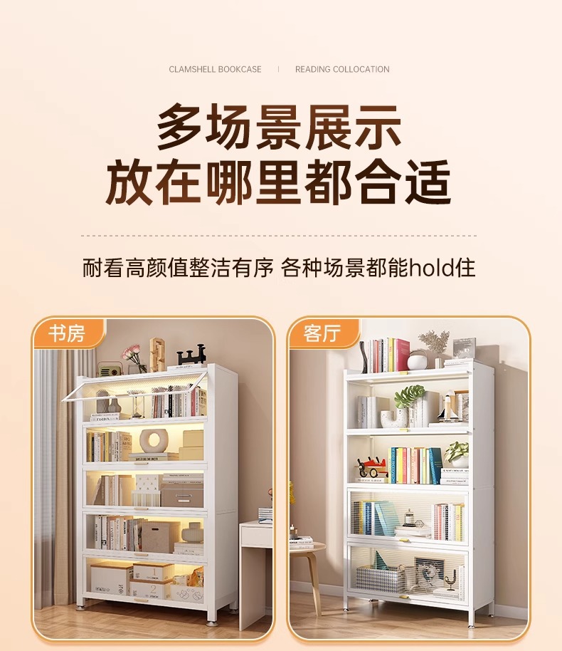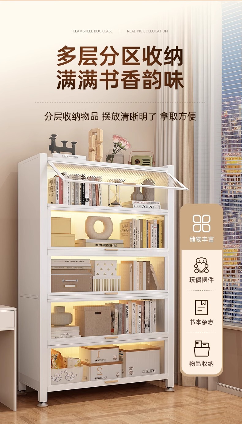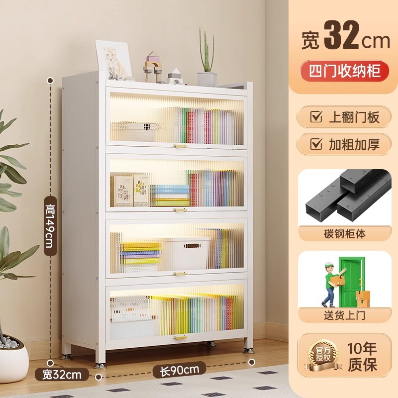钢制书柜带门儿童书架防尘储物柜客厅展示柜铁艺卧室置物架收纳柜